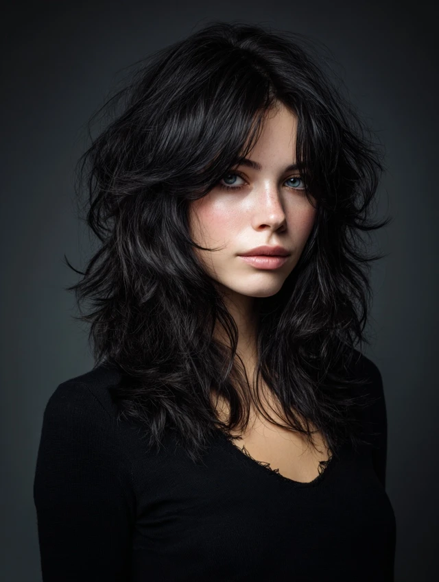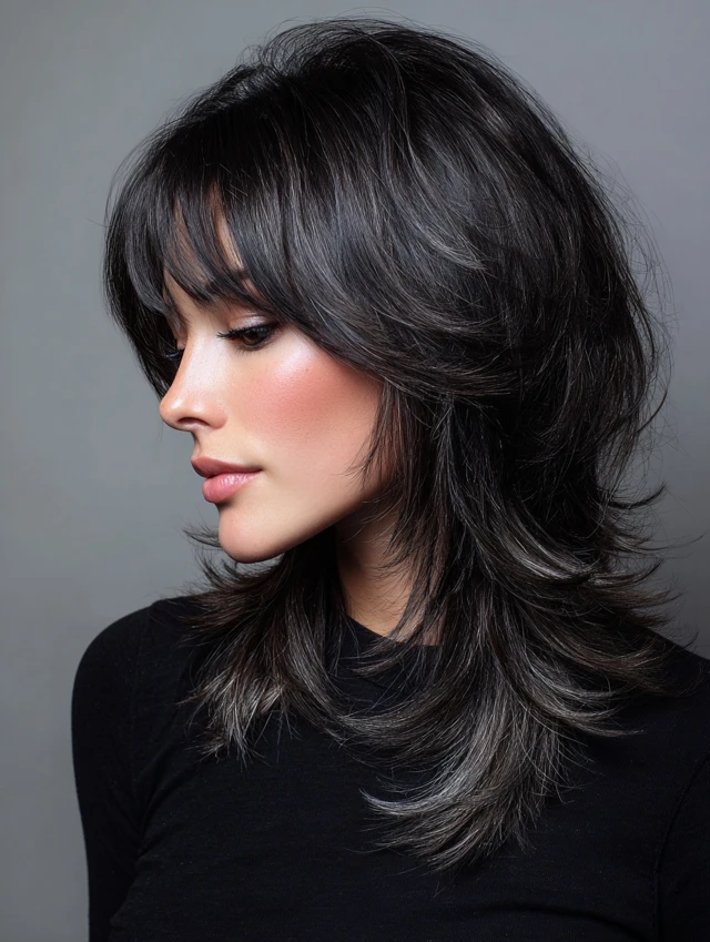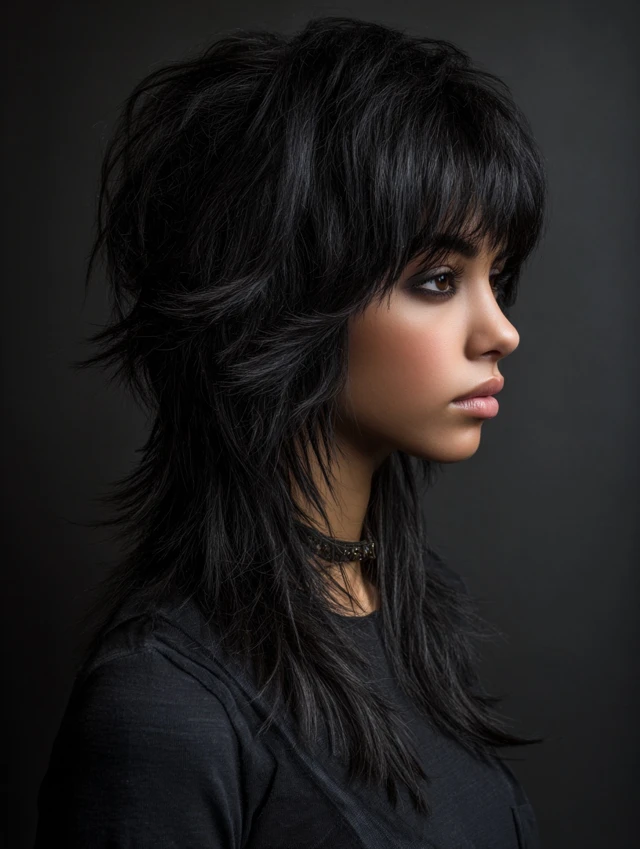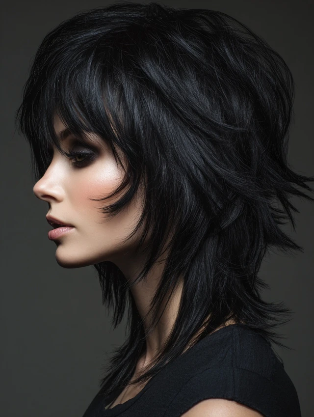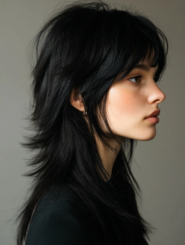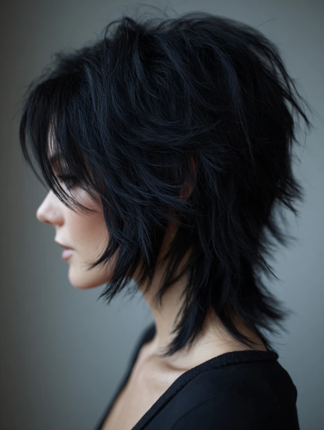The black wolf cut is a bold, edgy hairstyle defined by choppy layers, lifted crown, and feathered ends. Its dark color enhances depth and contrast, making every layer more pronounced. This cut works for straight, wavy, or slightly curly hair and suits most face shapes. Styled tousled, messy, or sleek, the black wolf cut exudes modernity, drama, and effortless edge, making it perfect for women who want a statement-making haircut with low-maintenance styling.