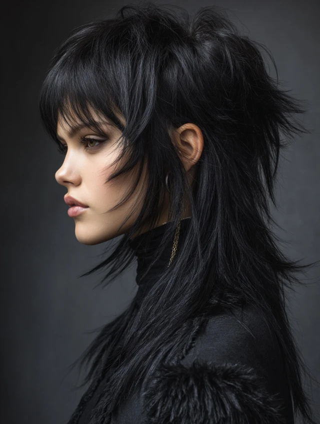 Edgy Black Wolf Cut