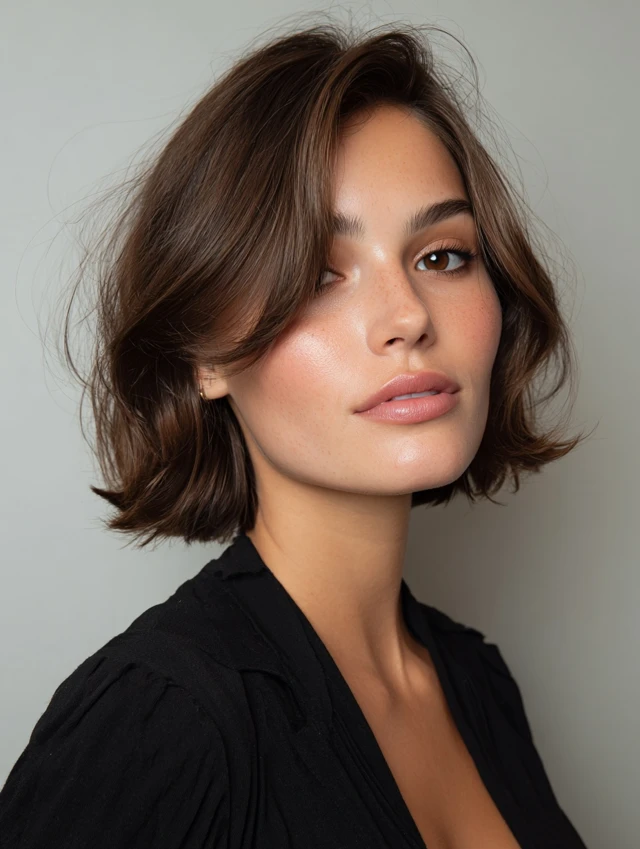 From angled shapes to curtain bangs and wavy finishes, these options prove that fine hair does not limit your choices. Which one would you try first—the layered crown-lift bob, the blunt-edge version, or the wavy textured cut?