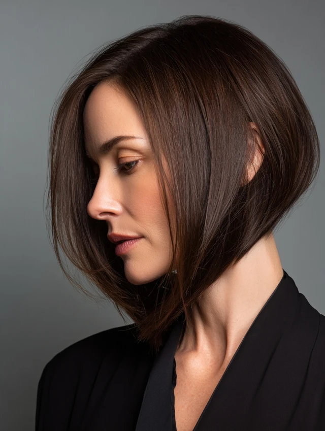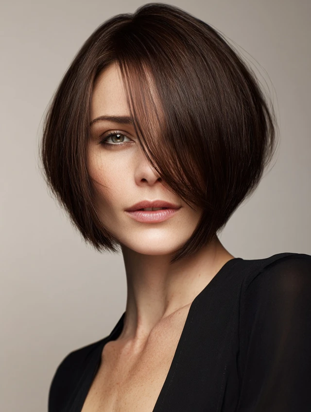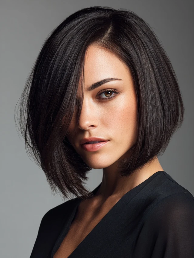 Straight or lightly wavy hair works best. Blow-dry the front forward for lift. This style fits modern offices and fashion-forward moods. Shape-ups keep angles sharp.