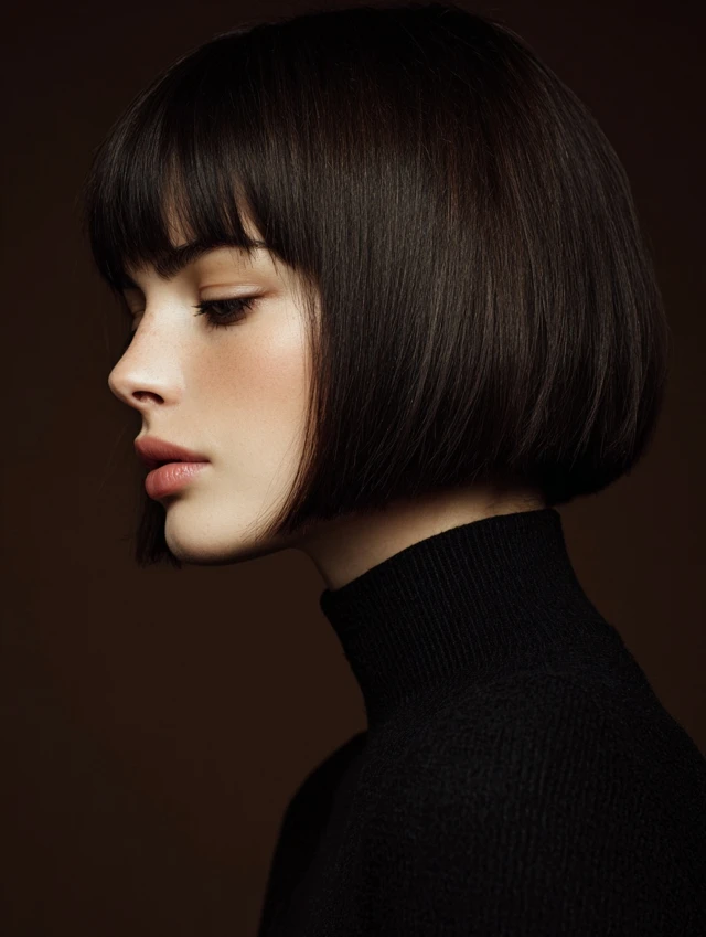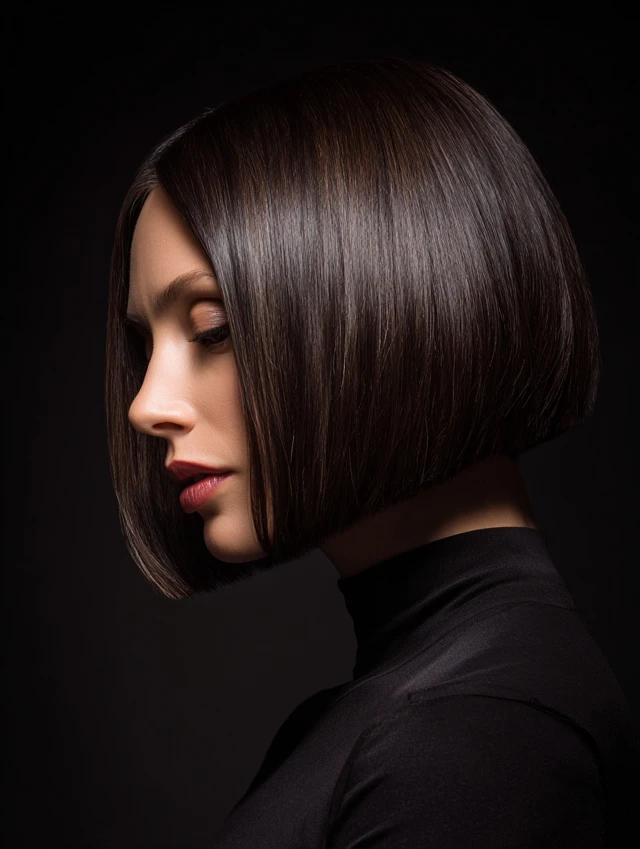 Straight fine hair shows this best. Flat-iron lightly and finish with root spray. This version works for polished looks and tailored outfits. Regular trims keep the edge crisp.