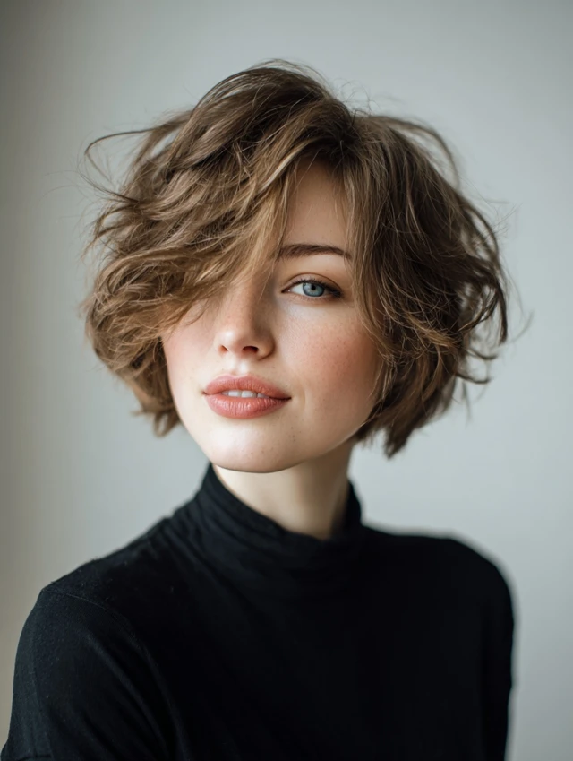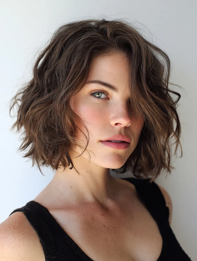 Loose waves turn the bob wolf cut into something relaxed and wearable. It suits most face shapes because movement softens sharp edges. Medium to thick hair holds the wave pattern well, though fine hair can use texture spray for grip.
