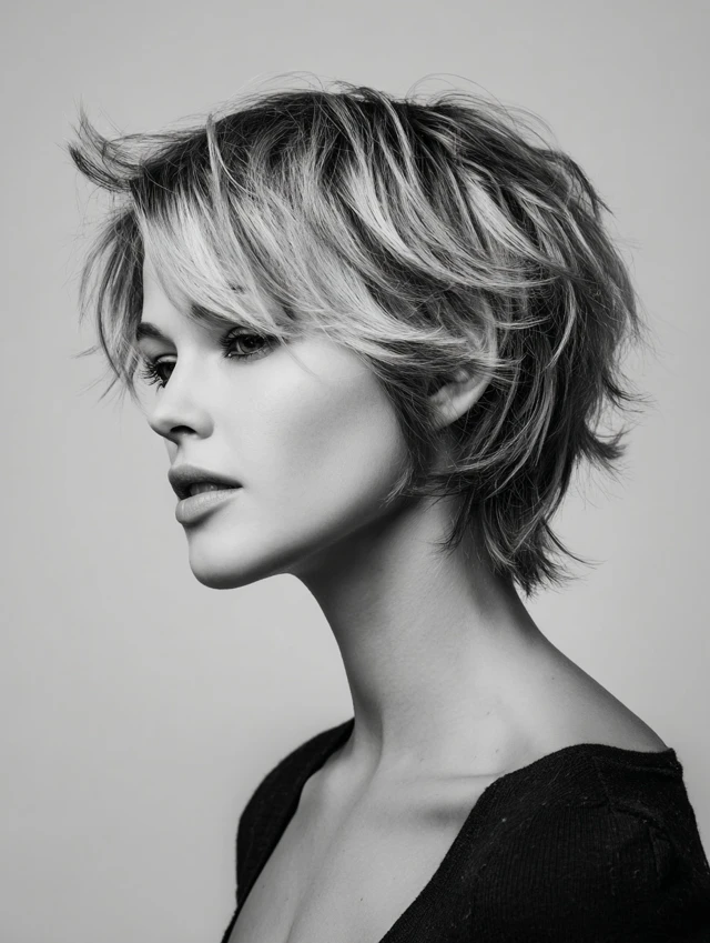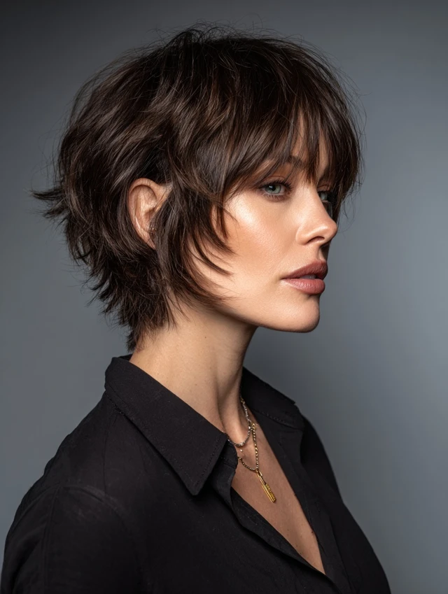 This take sits near the jaw with aggressive layers through the crown. It highlights cheekbones and suits oval or heart-shaped faces best. Fine hair gains body from short layers, while thicker hair feels lighter and more breathable.