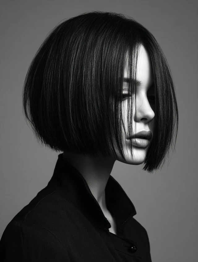 Here, the outline stays sharp while internal layers create texture. It suits people who like clean silhouettes with attitude inside. Straight or lightly wavy hair shows the contrast best. Round faces benefit from the defined edge paired with volume on top.