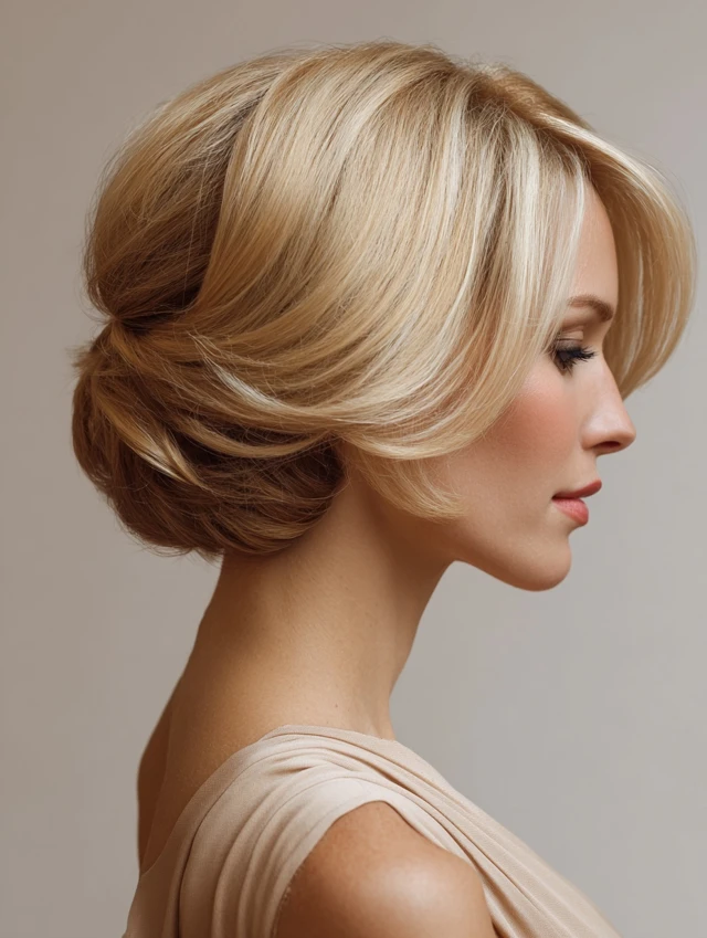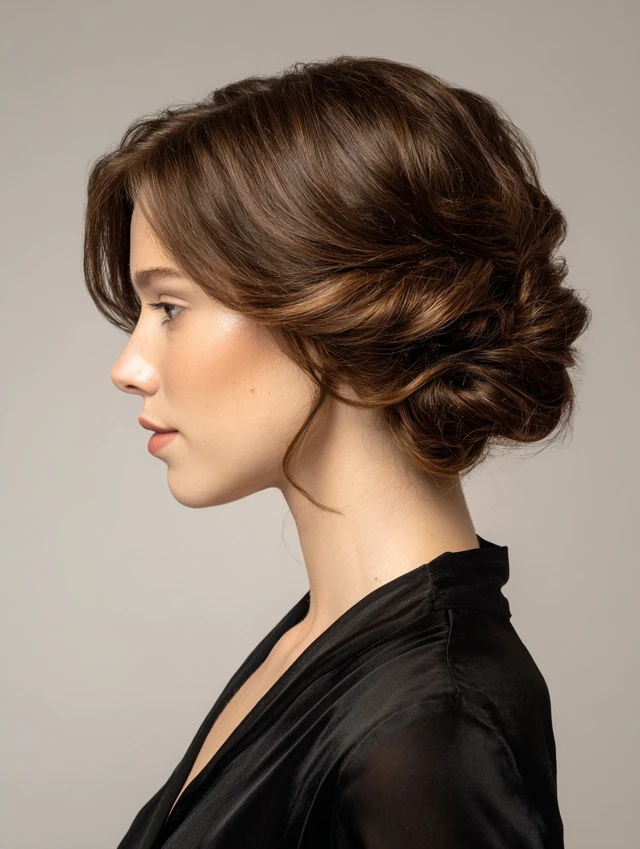 Great for chin-length cuts. Curl first for grip. This version suits dinners and dressy occasions. Secure with discreet pins.