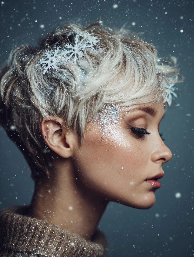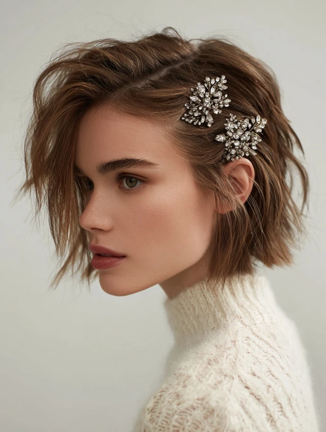 From glittered pixies to tucked-up bobs and jeweled clips, each style brings a different mood while staying practical. Which one would you wear to your next holiday event—the sparkling part, the sleek bob, or the soft festive waves?