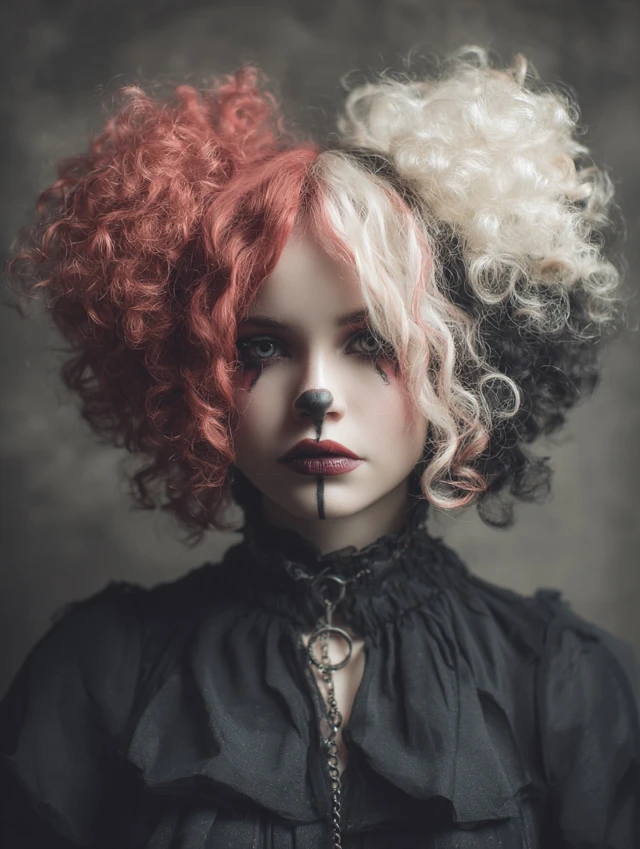 Clown hairstyles lean into exaggeration, color, and playful chaos. These looks exaggerate volume, contrast, and shape to create instant visual impact. Big curls, sharp parts, dramatic pigtails, and bright streaks define the style. Some versions feel spooky, others silly or theatrical, but all aim to grab attention fast. Whether for costumes, performances, or themed shoots, clown hair uses texture and bold structure instead of subtlety. With the right styling tricks, you can create a dramatic clown-inspired look that stays wearable, expressive, and surprisingly fun to build.