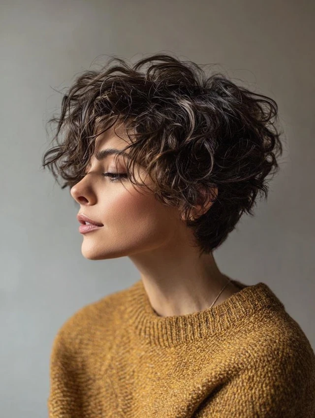 Curly pixie cuts combine short, structured layers with natural curl texture. They create a bold, playful silhouette while keeping maintenance low. The crown gets volume, curls frame the face, and the ends stay light and airy. This haircut works for women who want personality without long styling routines. It suits oval, round, and heart-shaped faces. Curly pixies can be messy, polished, or tousled, all looking intentional. Their versatility and modern charm explain why this cut continues to grow in popularity.