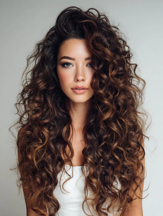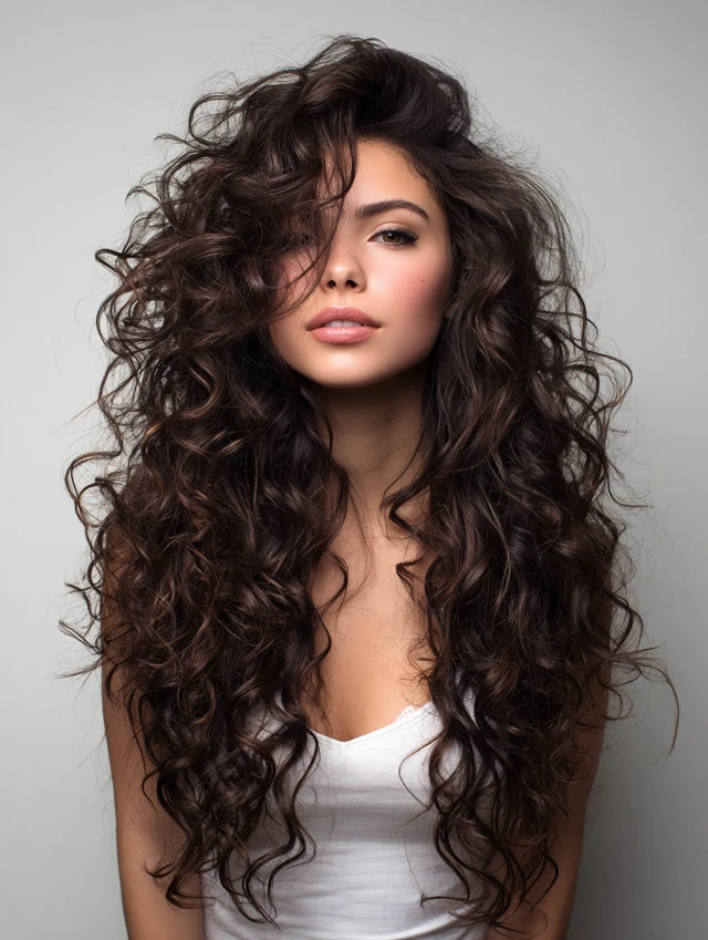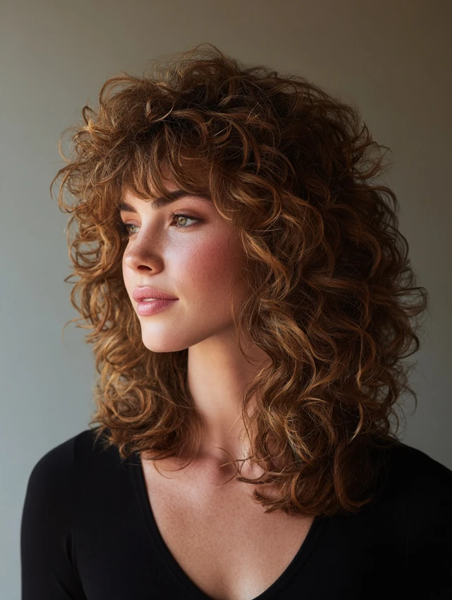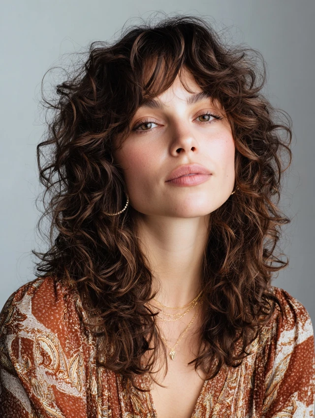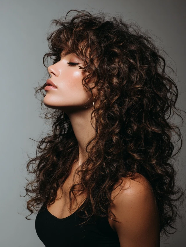 Long Curly Wolf Cut With Flowing Layers