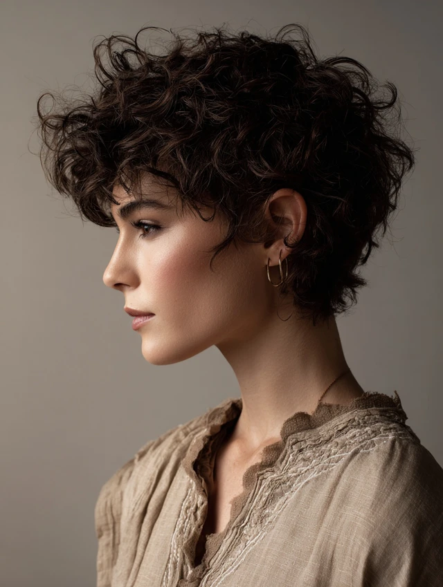 Short Curly Wolf Cut With Lifted Crown