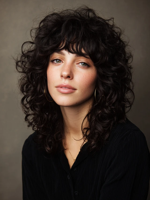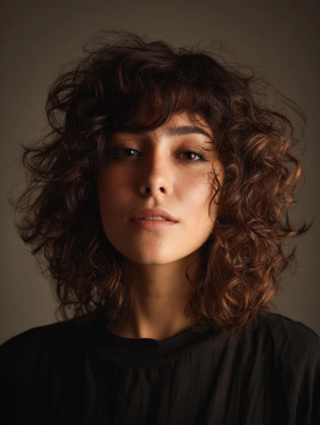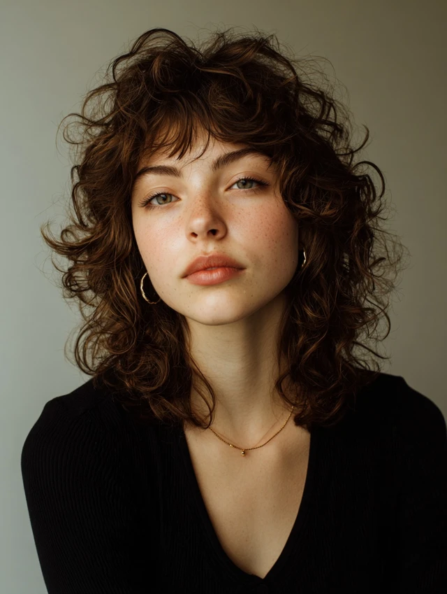Curly Wolf Cut With Curtain Bangs