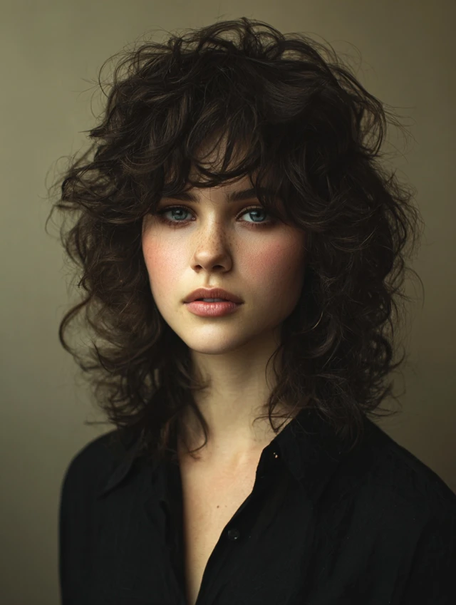 The curly wolf cut relies on strategic layering. Shorter sections at the top create height, while longer back pieces maintain length and drama. That balance prevents triangle shapes and helps curls stack neatly. The face-framing pieces soften strong features and draw attention to the eyes.