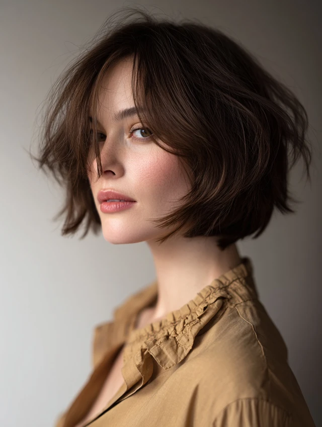 Fluffy bob haircuts rely on smart layering. Shorter pieces at the crown create lift, while feathered ends prevent the shape from looking boxy. That balance frames the face gently and keeps the silhouette light instead of flat.