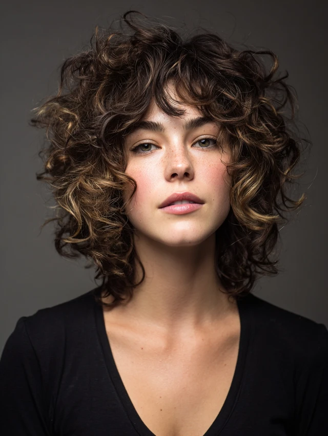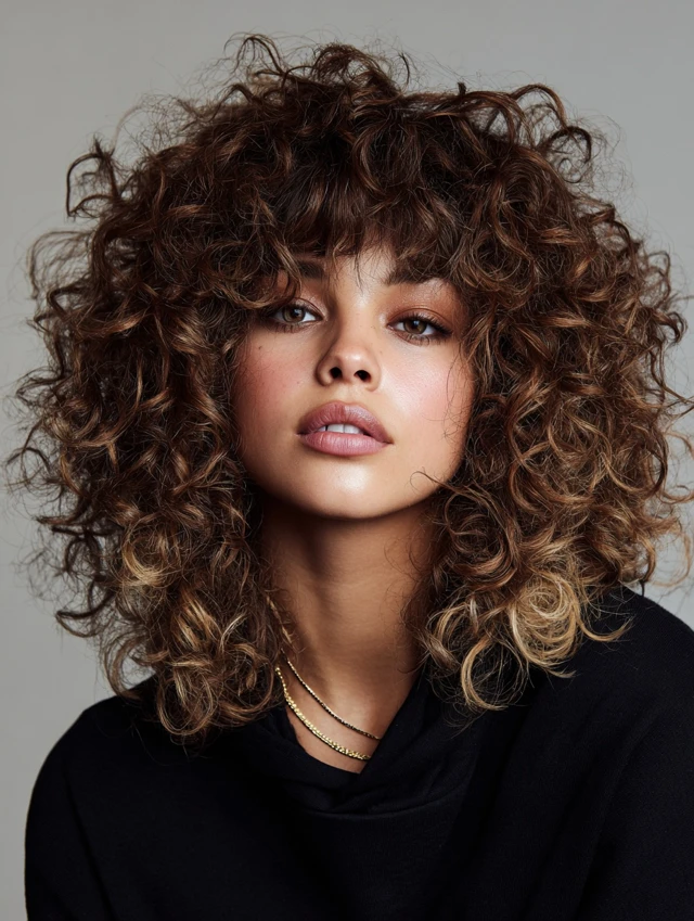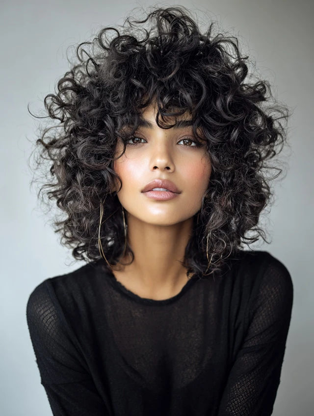 Curly fluffy wolf cuts maintain natural curl while creating airy volume at the crown. Layers remove bulk and allow curls to spring naturally. Works best for round or square faces, softening features while keeping curls defined.
