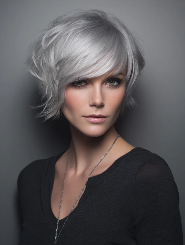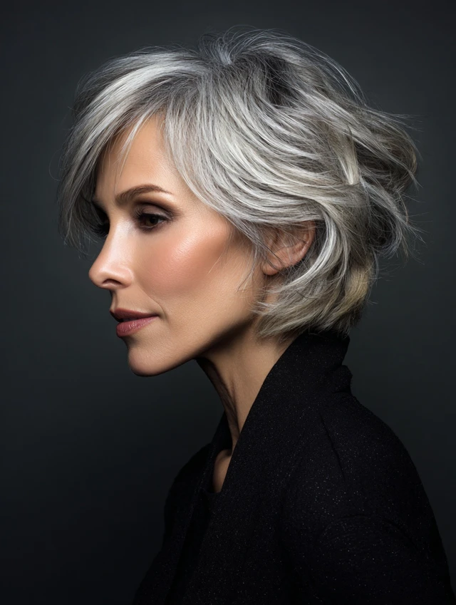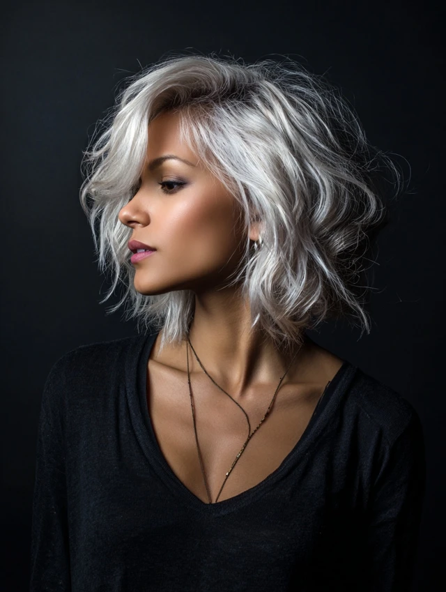 This style suits women transitioning to gray hair or wanting a soft, low-contrast look. Best for straight, wavy, or fine hair. Ash highlights work well with bobs, lobs, and layered cuts.