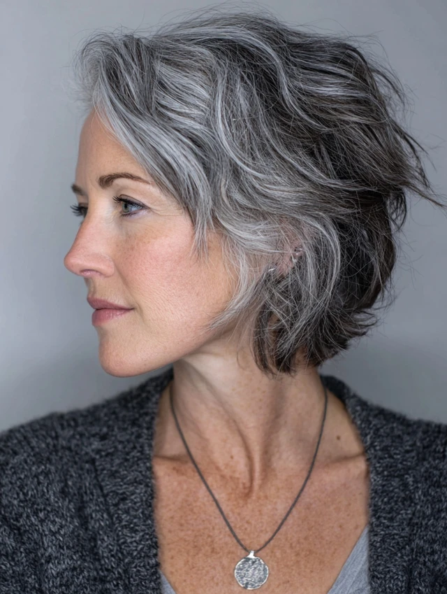 Ideal for women embracing their gray journey. Works well on short to medium hair and textured styles. The mix of tones adds depth, movement, and a sophisticated edge.