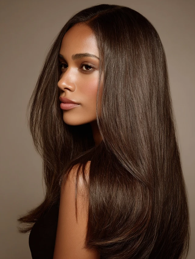 Chocolate brown deepens natural color while adding polish and shine. The richness flatters nearly every undertone and feels timeless.