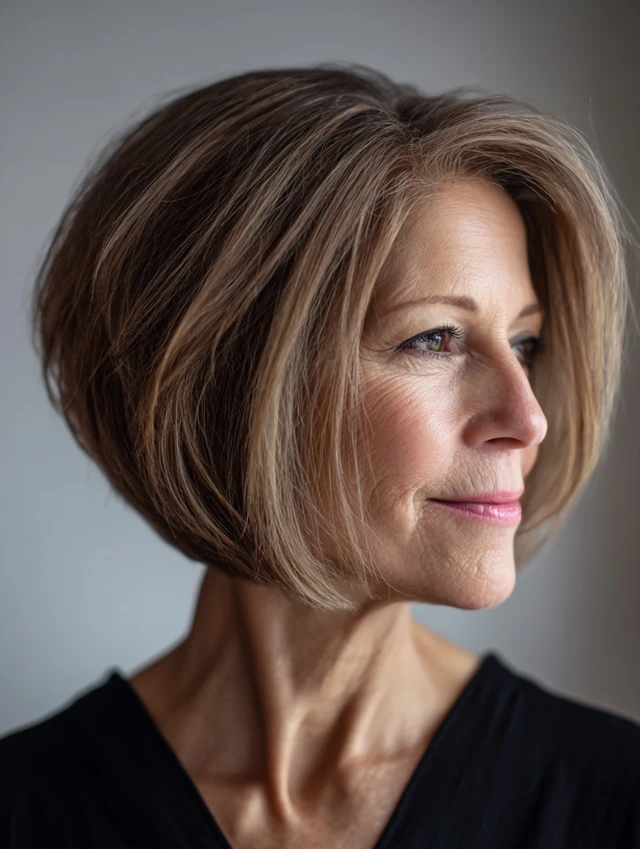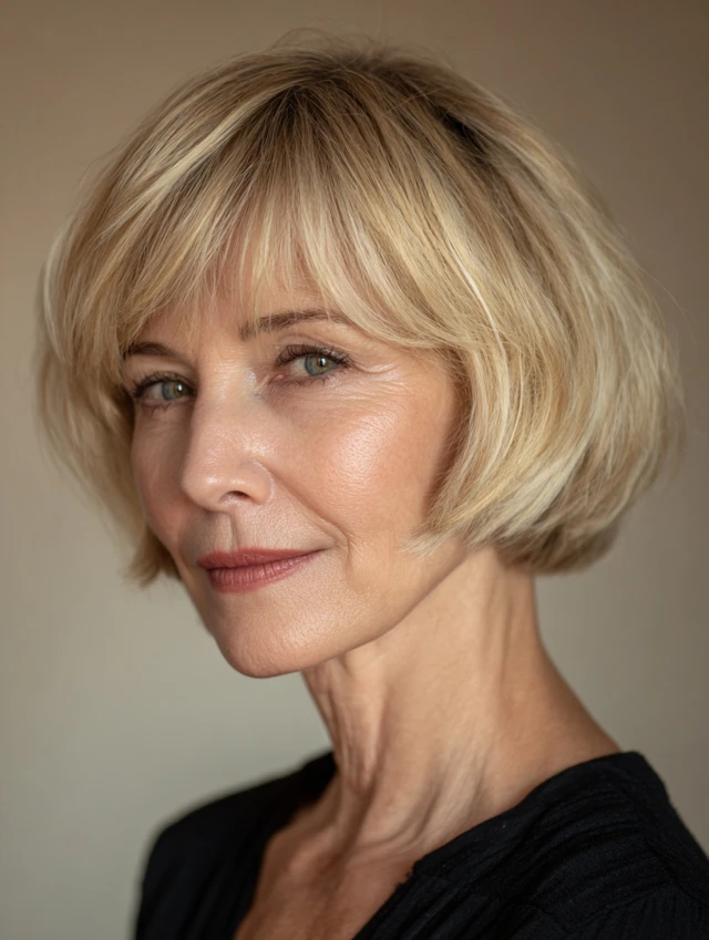 The classic bob is timeless for women over 50. Chin-length or slightly longer, it frames the face while adding structure. Soft layers prevent the cut from looking harsh. Works well for oval, square, and heart-shaped faces.