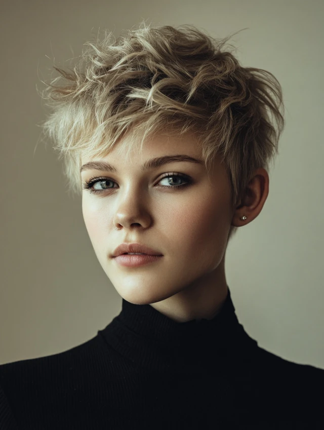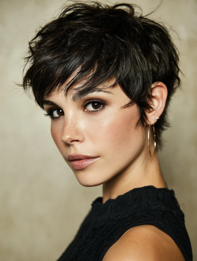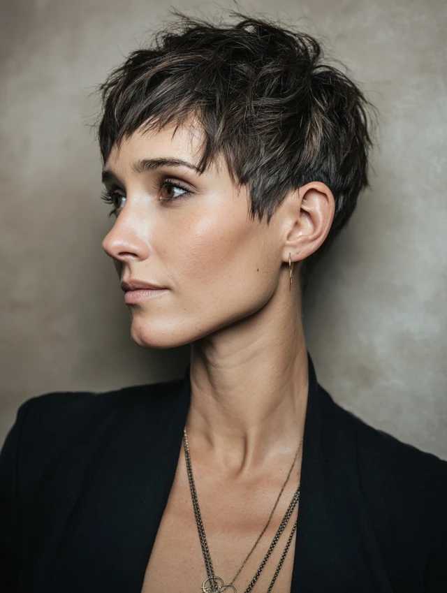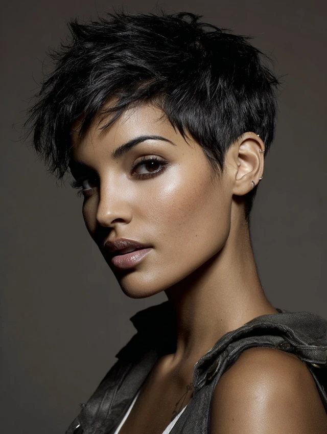 Pixie cuts expose the face while adding structure and edge. Works well for oval faces, accentuating jawlines and cheekbones.