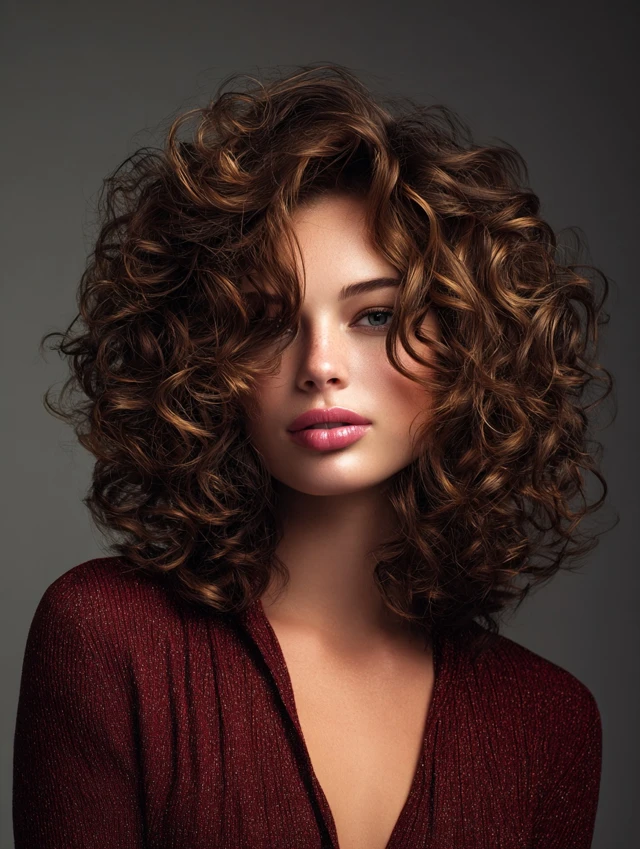 Layered curly hairstyles add bounce and volume without overwhelming an oval face. Works well with natural curls, emphasizing features gracefully.