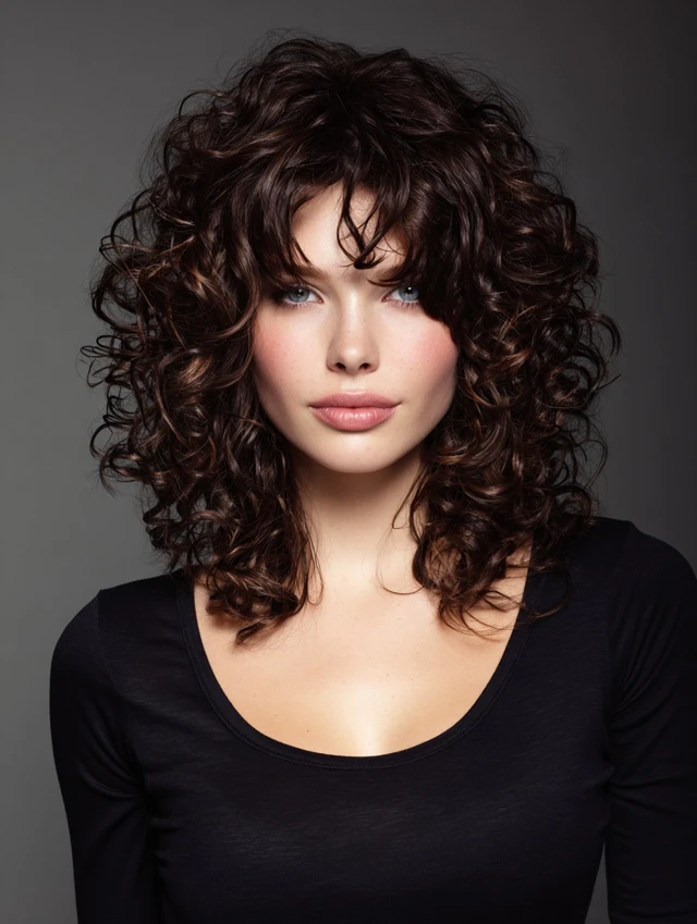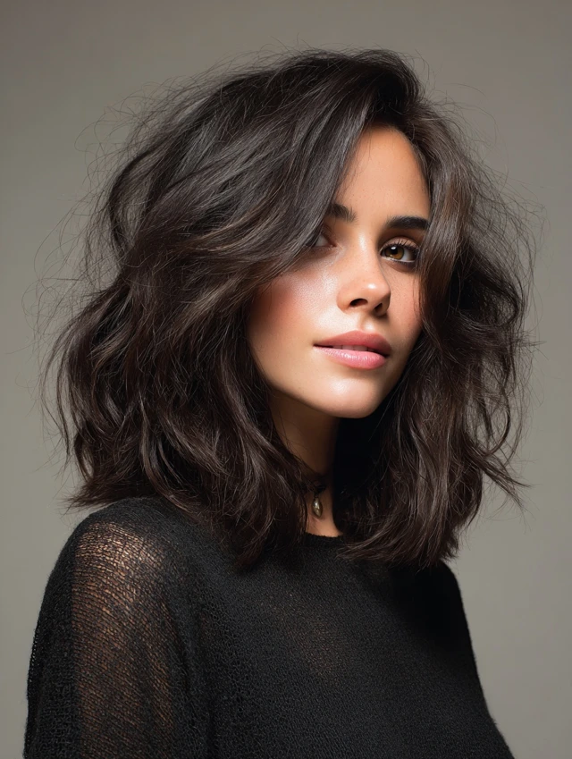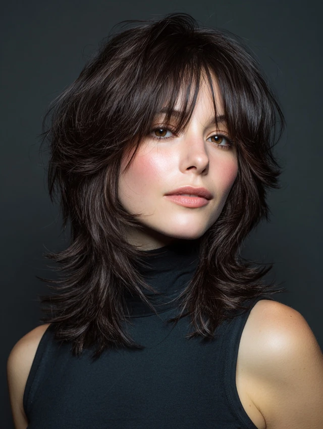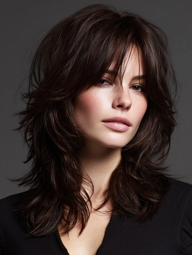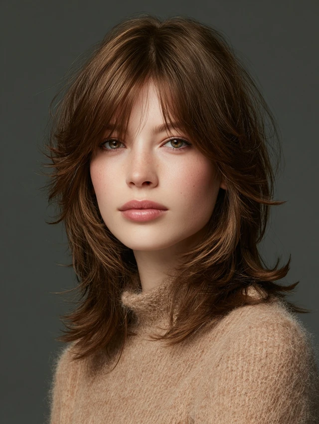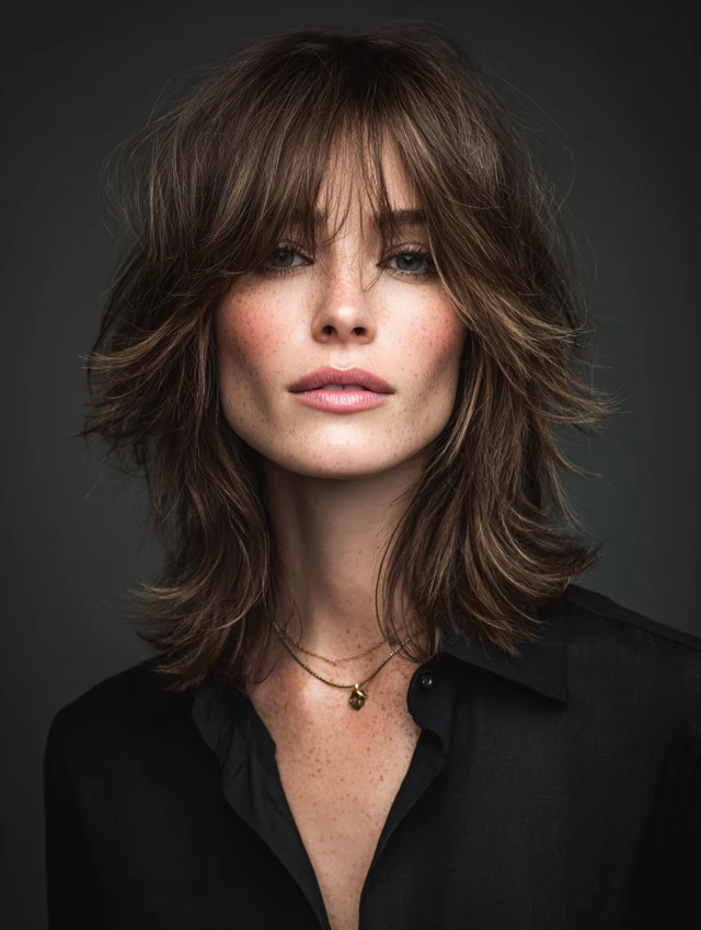 Shag cuts with layers around the shoulders highlight natural volume while softening features. Works well for oval faces, balancing the proportions elegantly.