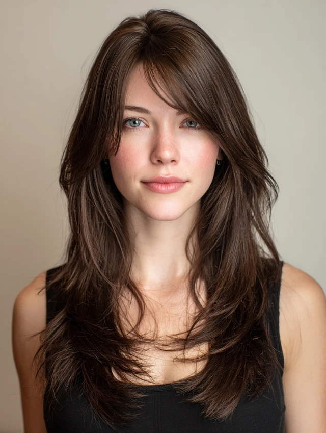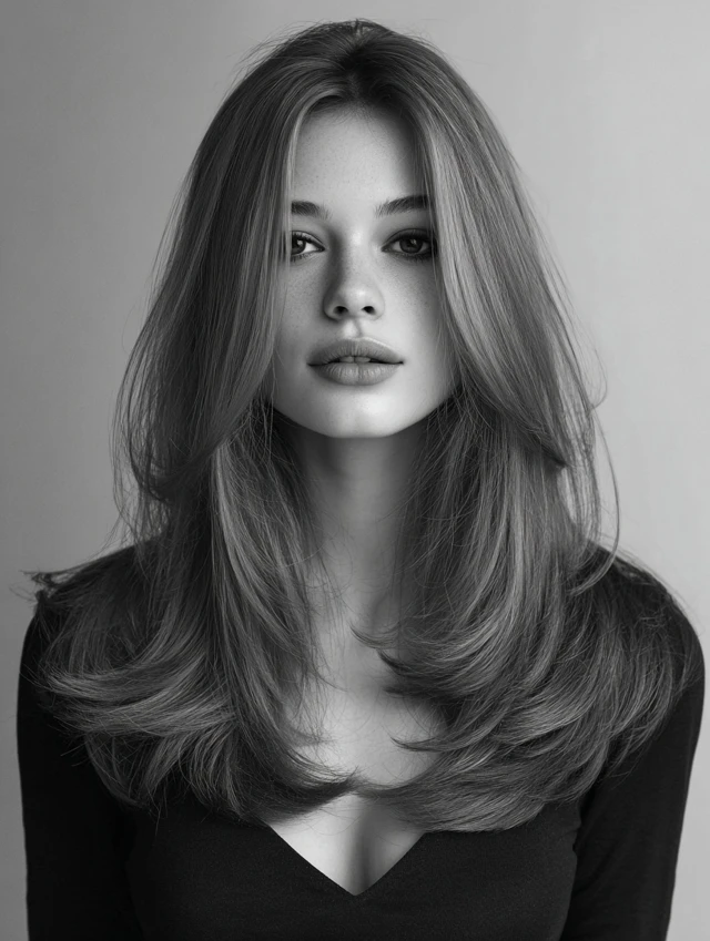 Long layers frame the face softly while adding movement and volume. Works well for oval faces, emphasizing cheekbones and jawlines without adding width.