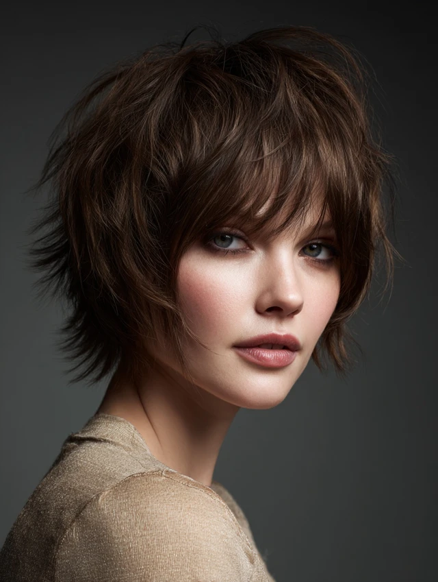 This cut suits straight to wavy hair textures best. Styling involves light texturizing paste or cream to define the edges. Maintenance is moderate but forgiving because the choppiness grows out naturally. Perfect for women seeking personality with minimal effort.