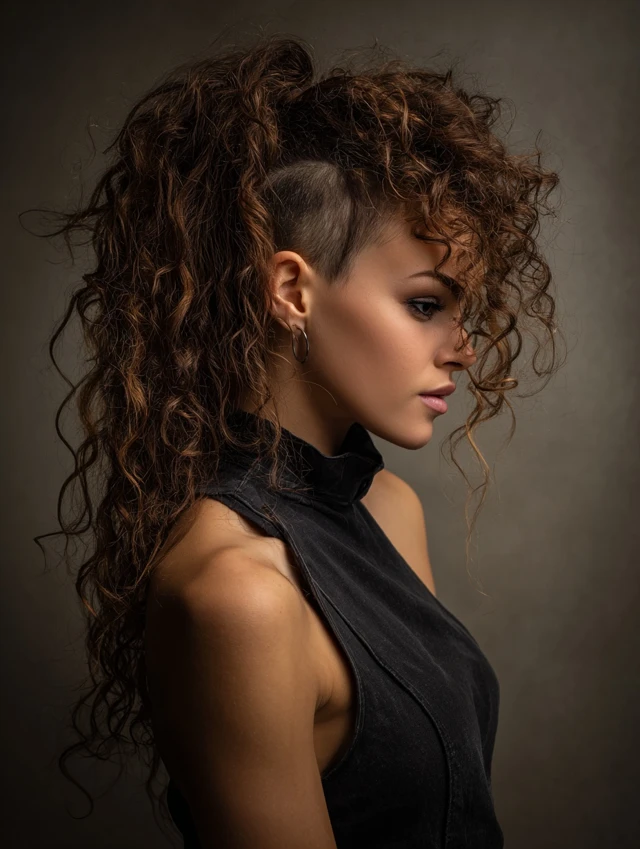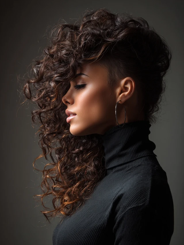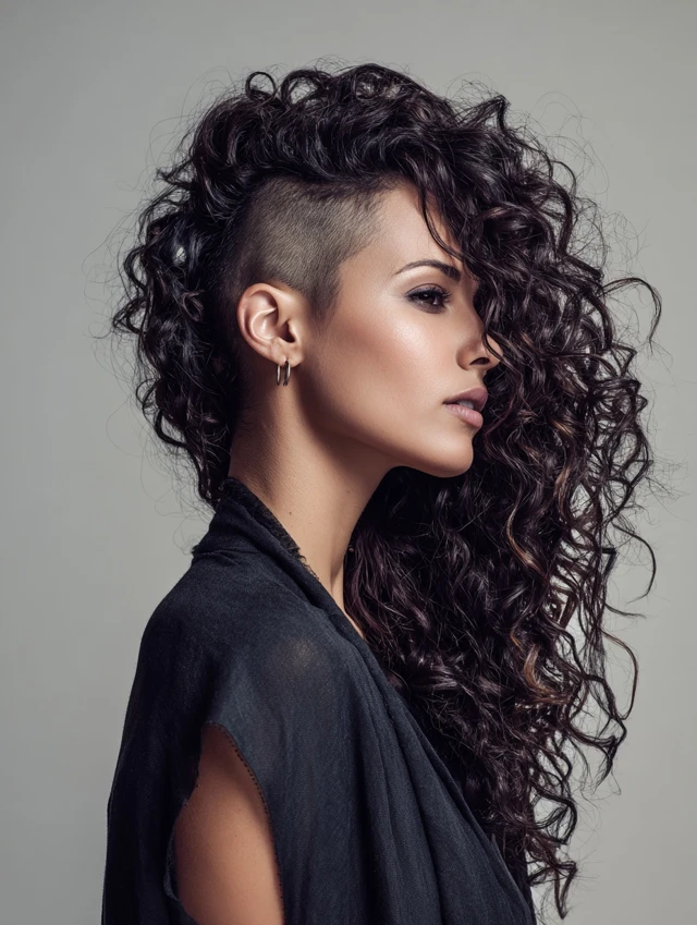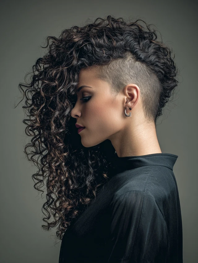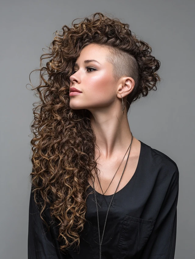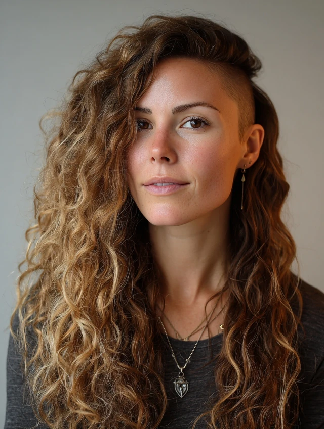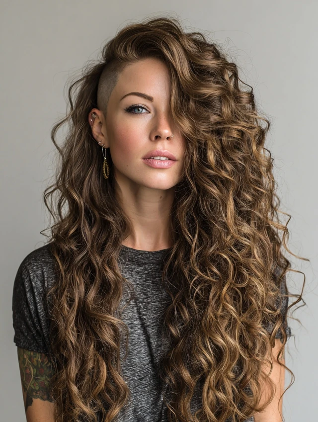 Long curly hair with undercut proves you do not need to choose between softness and strength. The mix of flowing curls and sharp lines creates movement, attitude, and endless styling options.