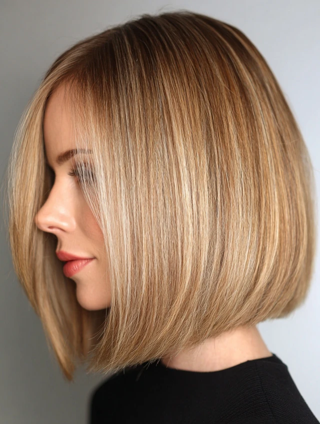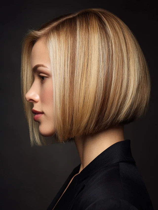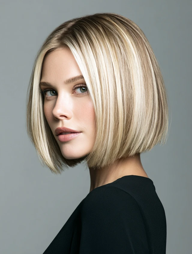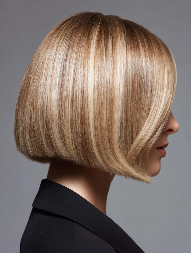 A collarbone-length bob paired with fine highlights feels understated and sharp. The length flatters most face shapes and keeps styling flexible. Fine hair gains depth from soft color placement, while thicker hair benefits from light layering inside the cut.