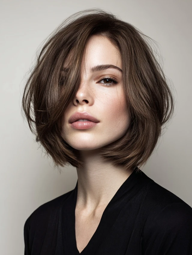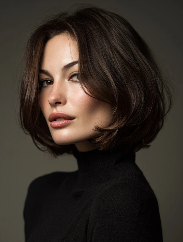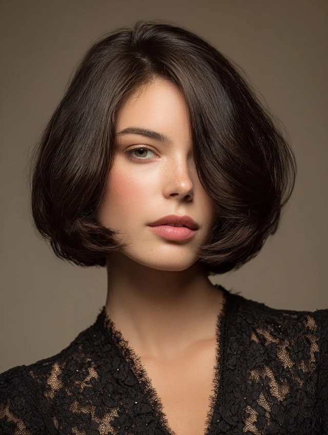 The old money bob works because it emphasizes clean lines and balance. The subtle layers prevent the cut from looking harsh, while the length frames the face naturally. It enhances features without drawing attention to flaws, creating a polished, timeless silhouette.