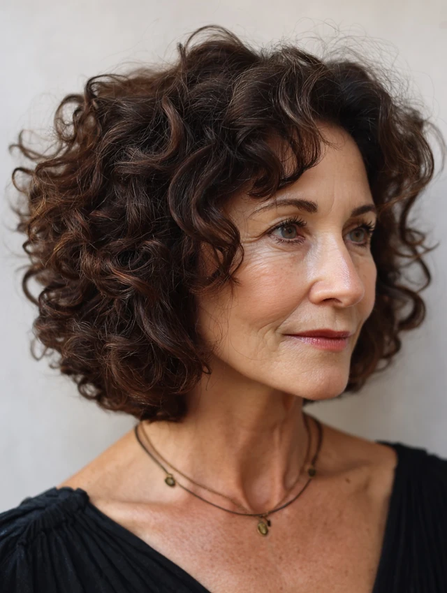 Styling focuses on curl cream and gentle air drying or diffusing. Minimal effort maintains the structured yet soft silhouette. Perfect for women embracing natural curls with a polished finish.