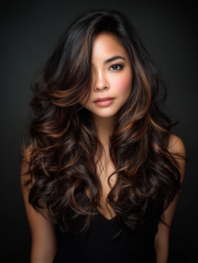 Black Hair With Brown Highlights That Add Warm Dimension