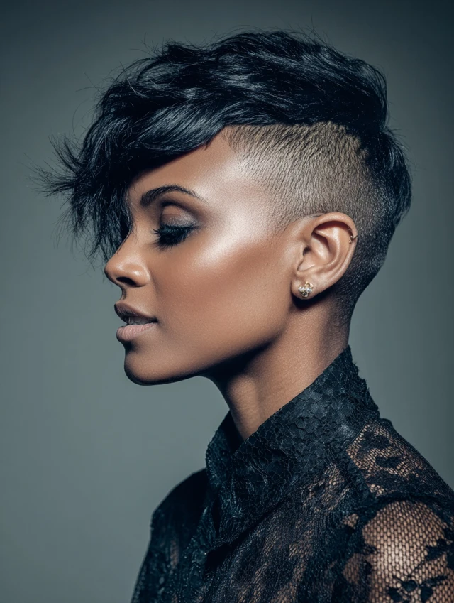 One or both sides get closely shaved while the top stays longer and textured. The asymmetry adds fearless attitude.