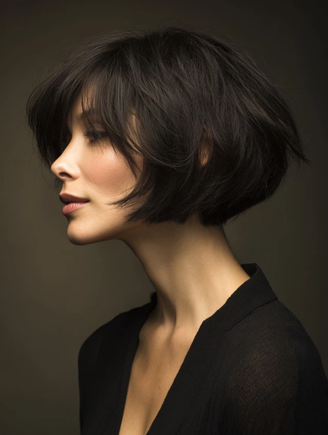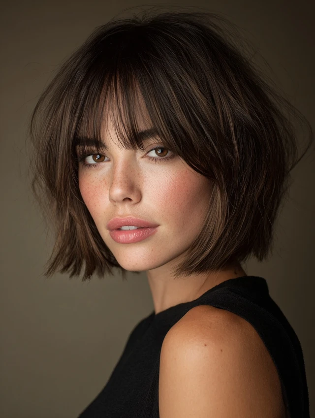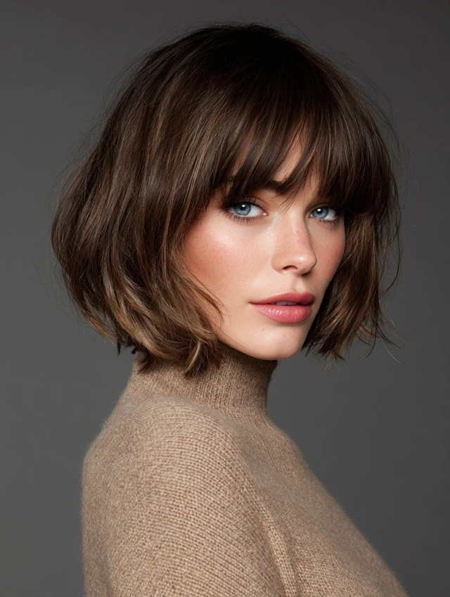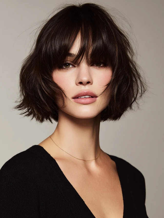 Razor Cut Bob With Curtain Bangs