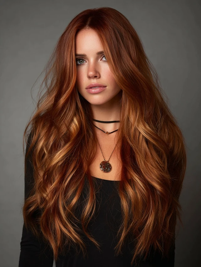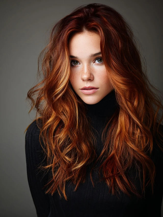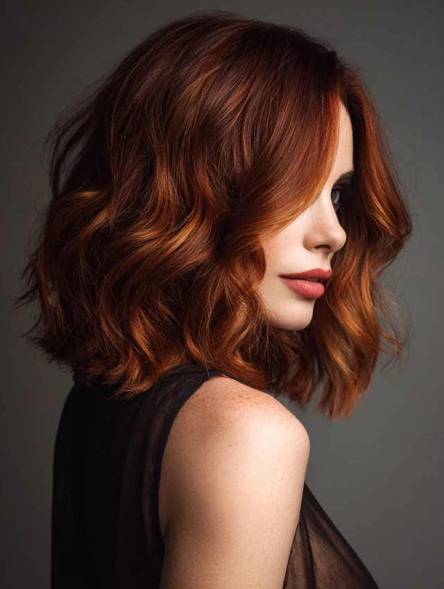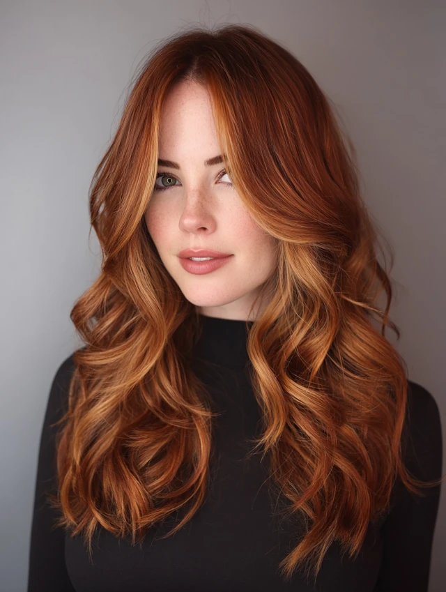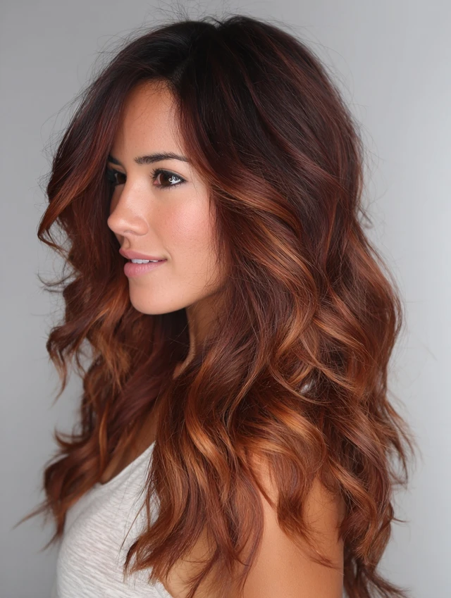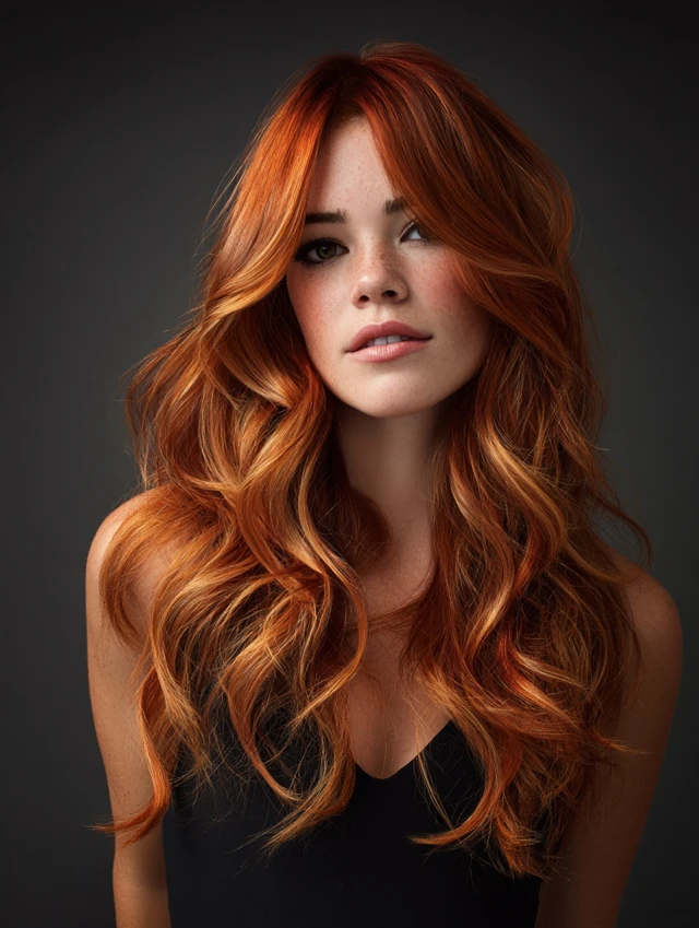 Red copper balayage offers glow, warmth, and eye-catching dimension without harsh lines. The mix of fiery ends and darker roots keeps the look sophisticated and easy to maintain.