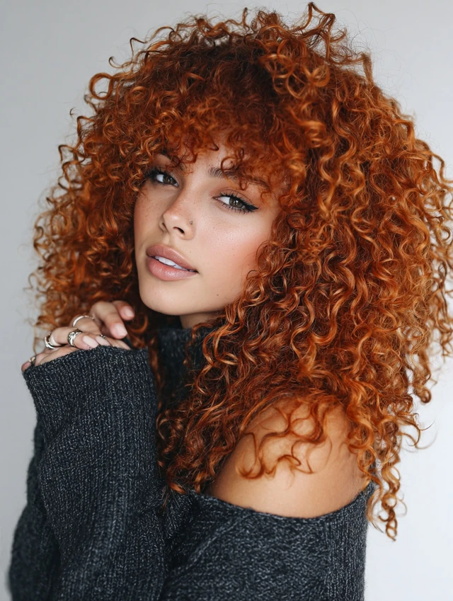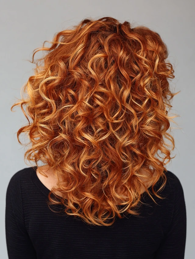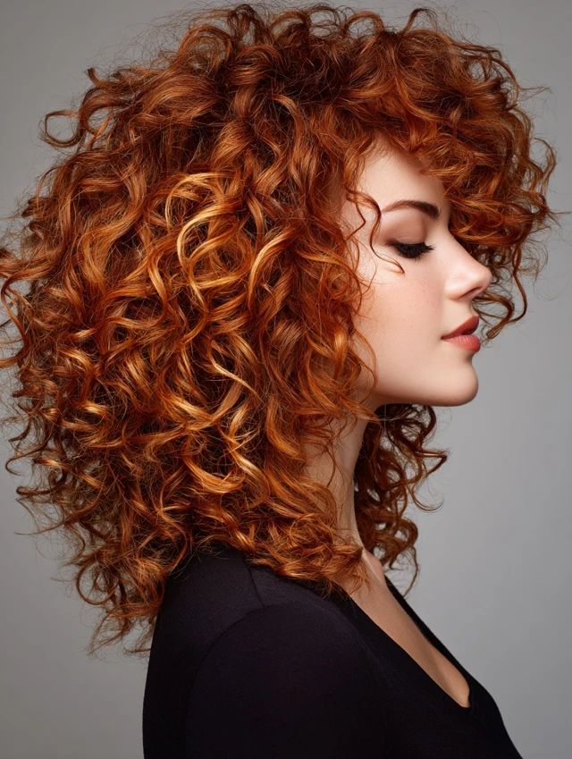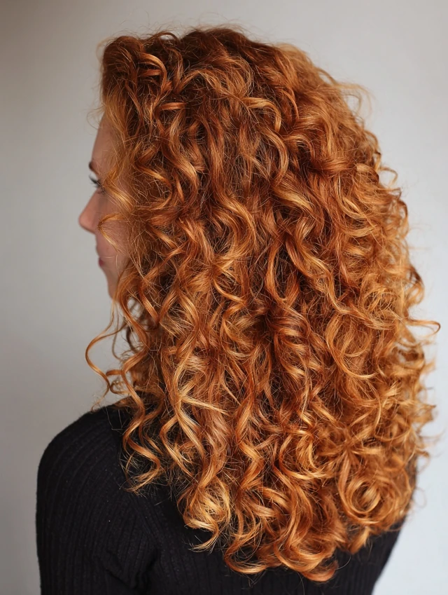 Curly Hair with Copper Highlights