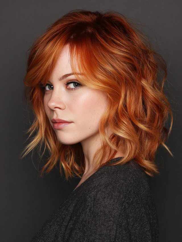 From subtle melts to bold face-framing pieces and curly highlights, each option brings a slightly different mood with the same luminous payoff. Which would you choose—the auburn melt, the copper front pieces, or the glowing lob version?