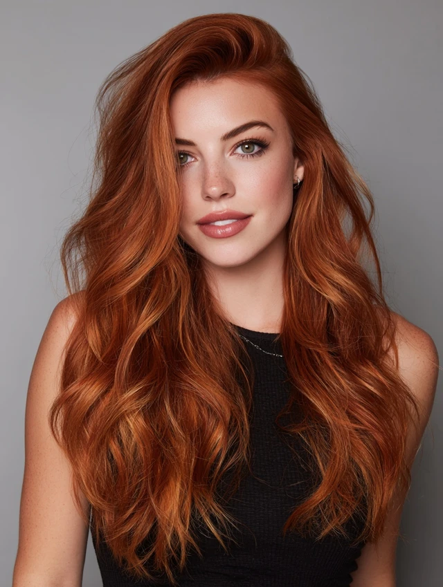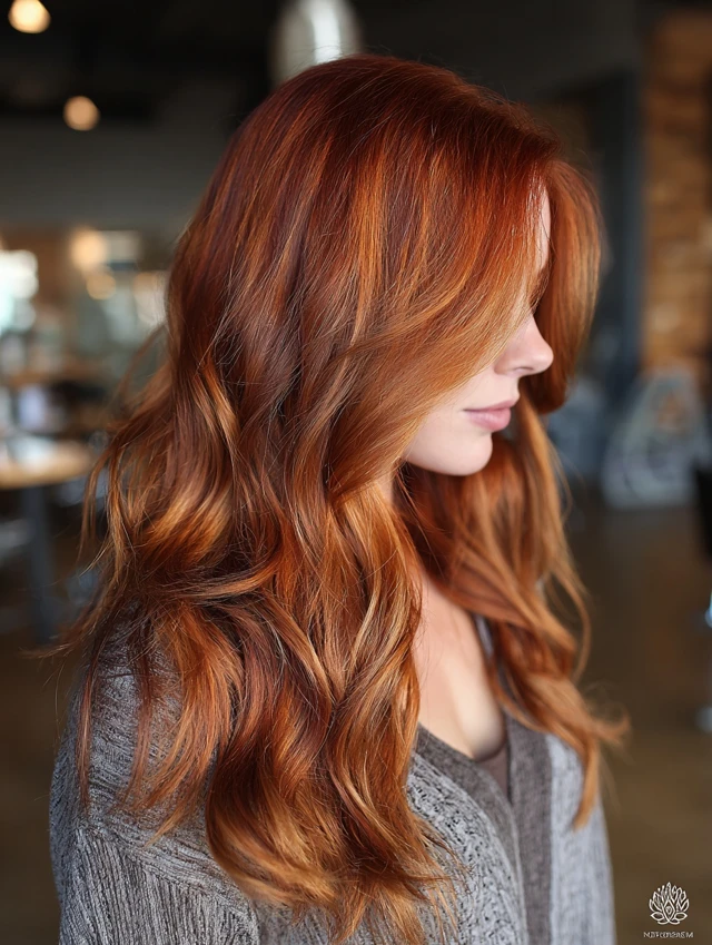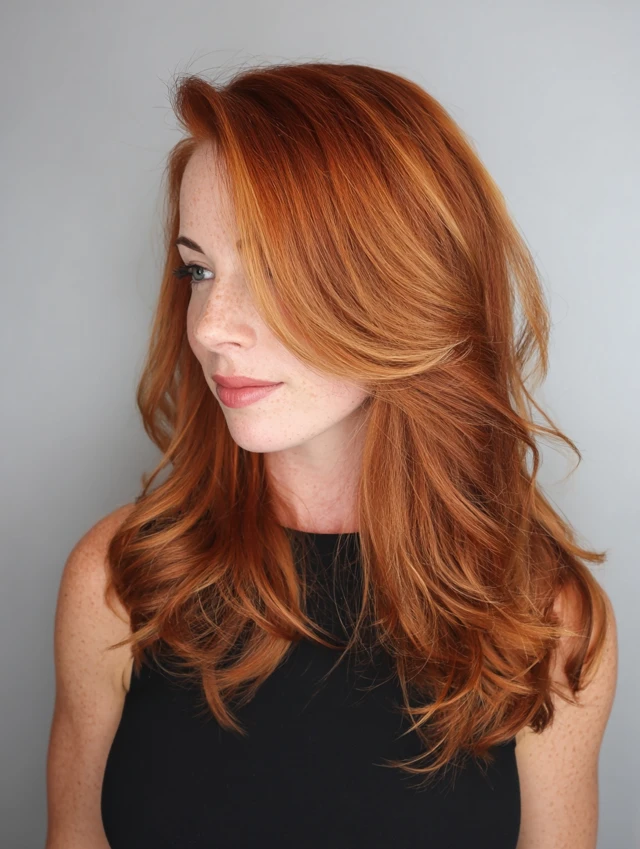 Ask for warm copper and auburn tones instead of bright orange. Request a soft root melt and blended placement. Gloss every six to eight weeks. Use sulfate-free shampoo. Deep-condition weekly. Limit heat styling so vibrancy lasts longer.