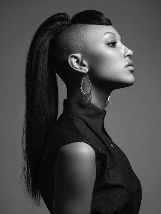 Decide how bold you want the shave—temples, one side, or both. Keep shaved areas moisturized with light oil or aloe. Use satin wraps at night. Avoid pulling the ponytail too tight along edges. Schedule clean-ups every two to four weeks so lines stay sharp. Switch ponytail height to change the vibe without cutting again.