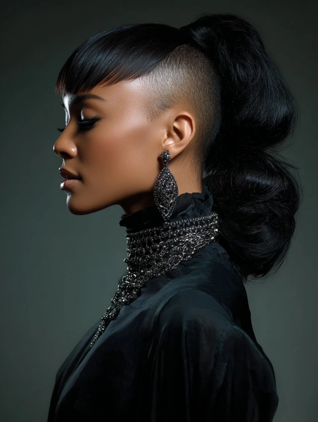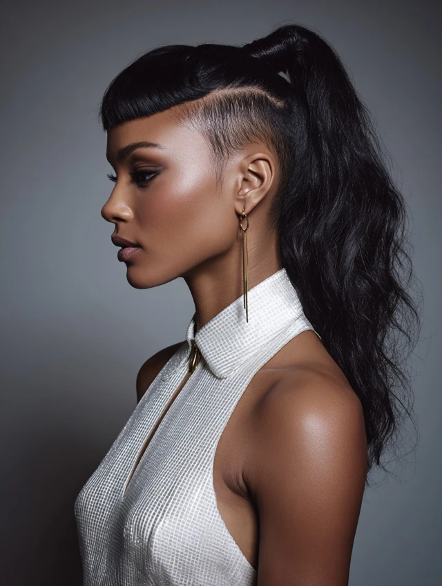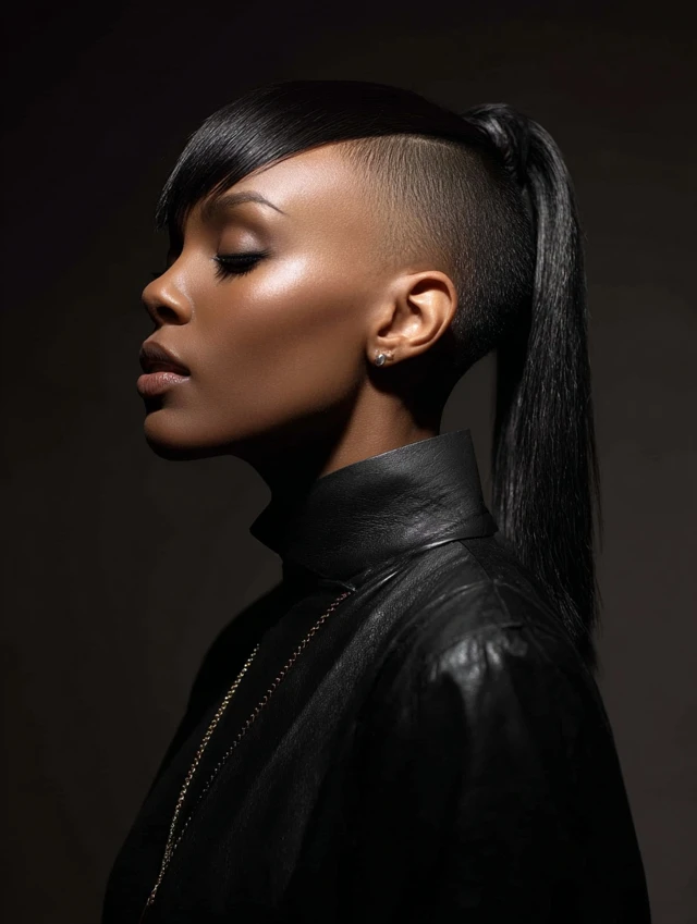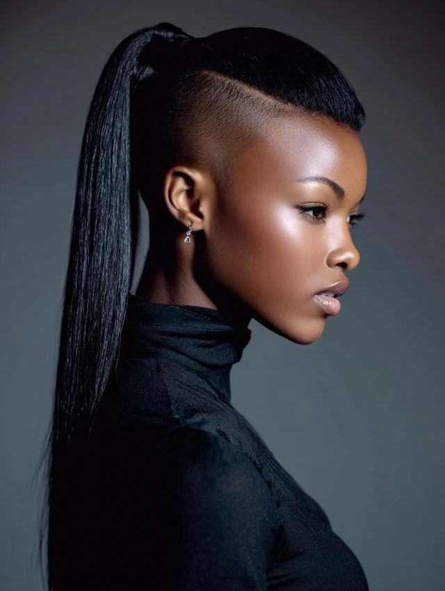 Shaved sides with ponytails give Black women a powerful mix of softness and strength. The contrast creates instant impact while the ponytail keeps things functional and stylish.