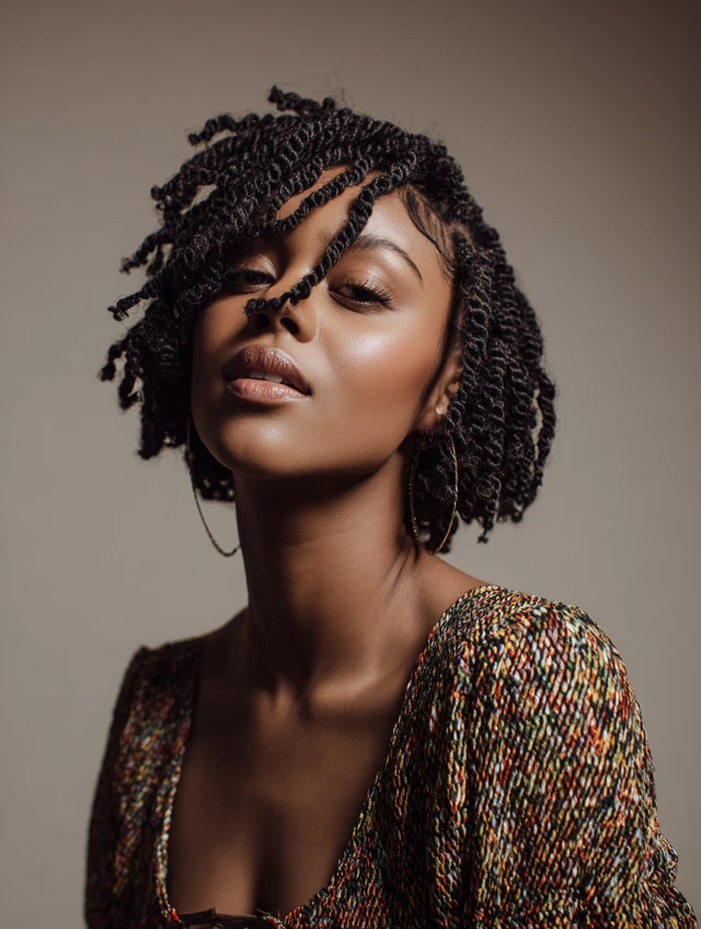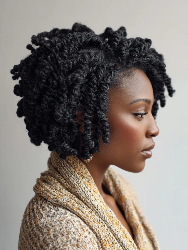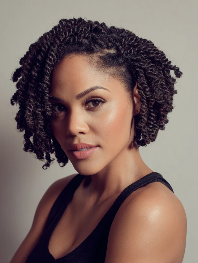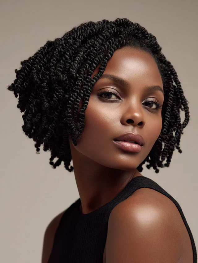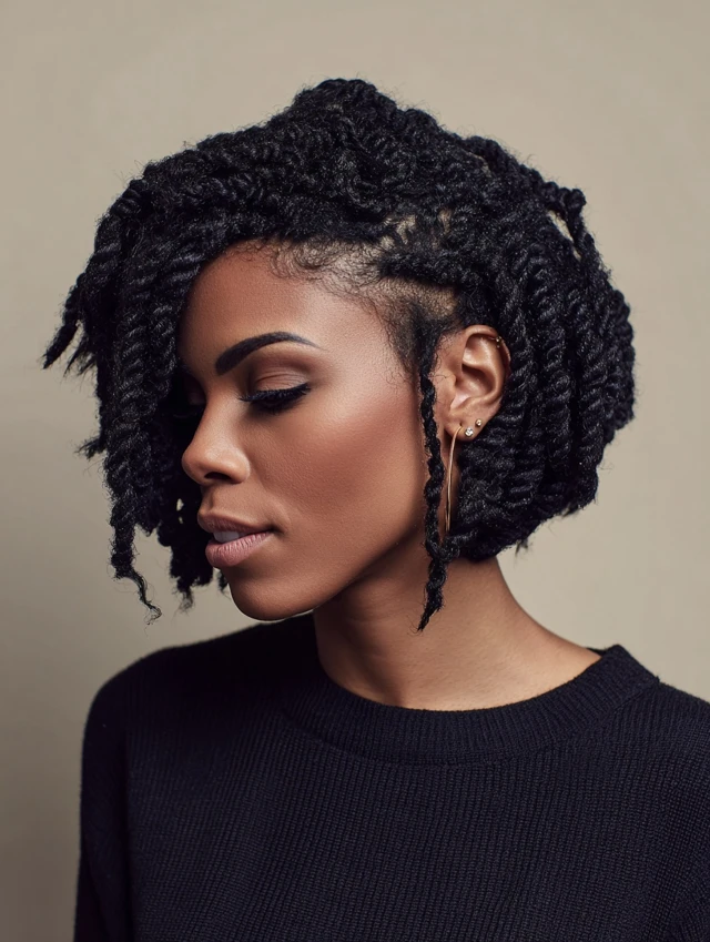 Short crochet twist hairstyles combine speed, protection, and style in one compact look. Instead of installing every twist strand by strand, stylists crochet pre-twisted hair onto cornrowed bases, which cuts install time while keeping tension low. Short lengths make the style lighter, cooler, and easier to manage day to day. From bobs to tapered cuts, these twists frame the face, highlight cheekbones, and work for busy schedules. When installed neatly and moisturized well, short crochet twists look polished while helping natural hair rest and retain length.