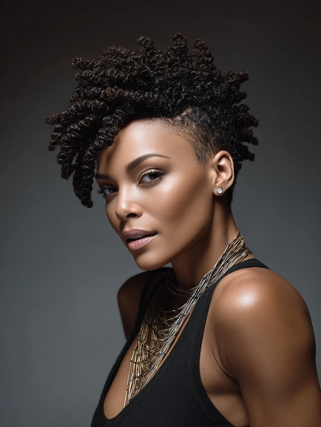 Chunkier Marley twists bring bold texture and definition. Keeping them short avoids heaviness and keeps the silhouette sharp.