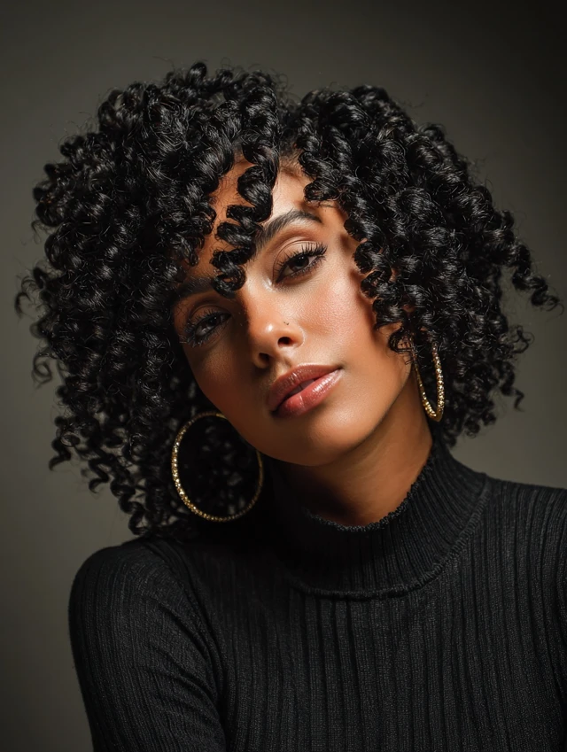 Perfect for women who want romance without long hair. Scrunch with curl mousse. This style fits date nights and workdays. Re-define curls as needed.