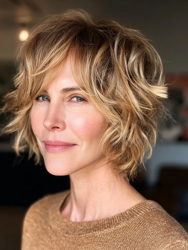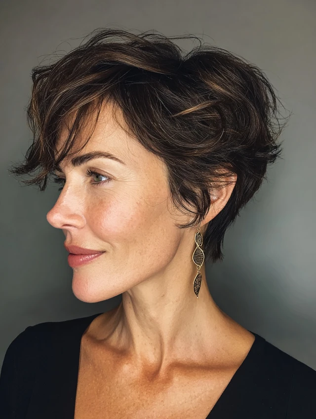 Short hairstyles help lift the face and add structure, which can soften fine lines and enhance natural bone structure. Layers and texture create volume, making hair appear fuller and healthier.