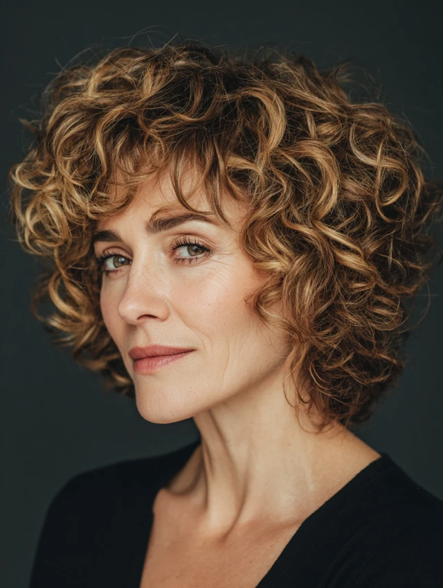 It works for oval and round faces. Best for naturally curly or wavy hair. Styling uses curl cream or mousse to define curls. Great for bold, confident, and stylish women over 40.