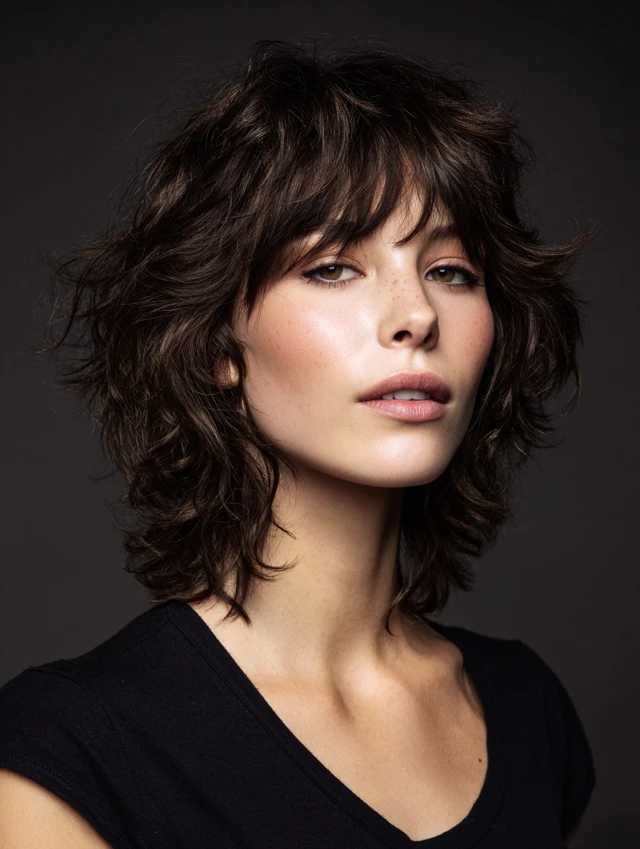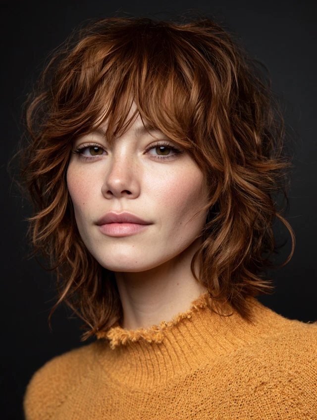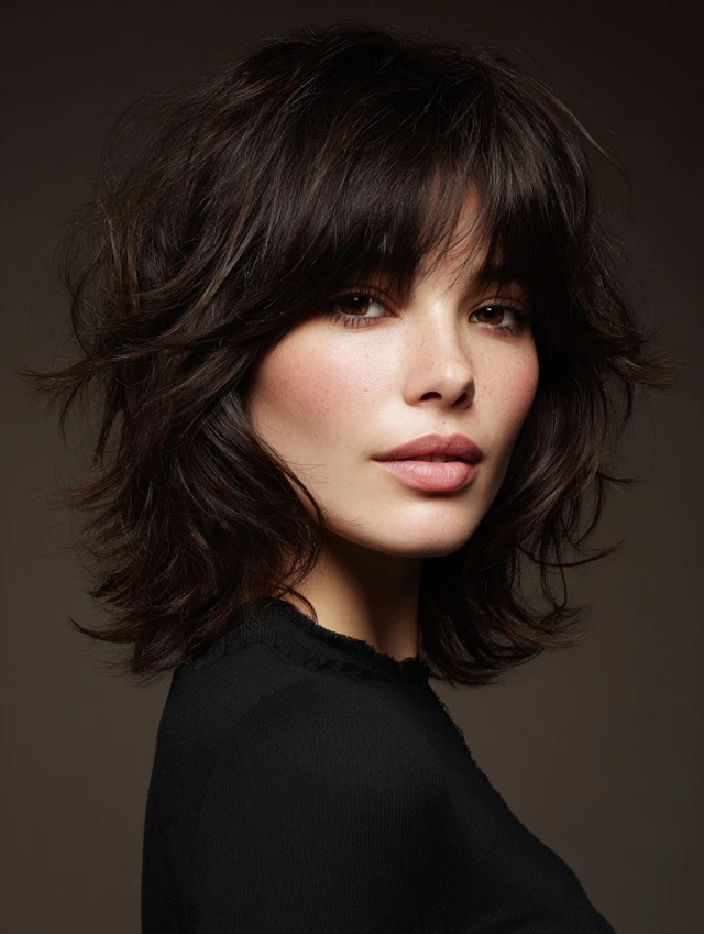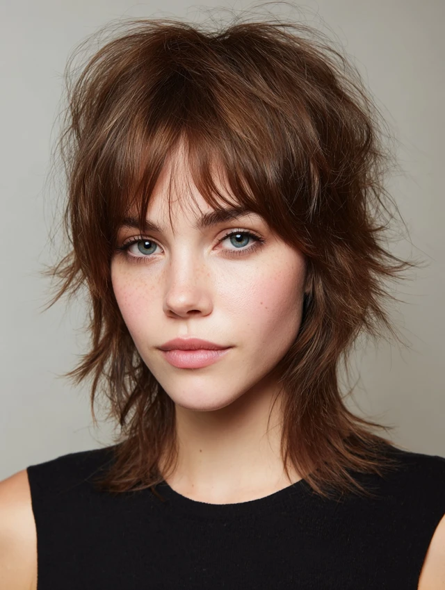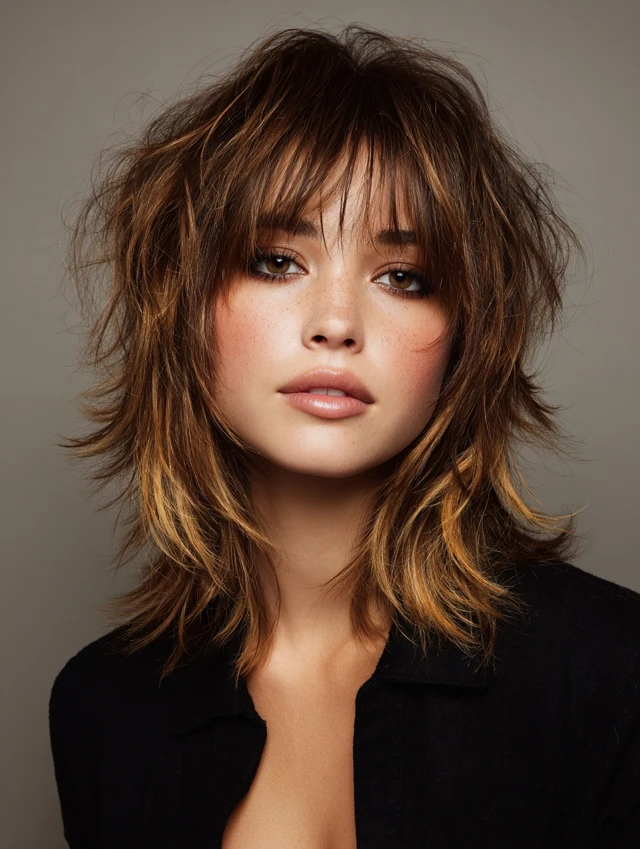 Textured shags use choppy, feathered layers for edgy volume. Bangs blend seamlessly to create balance and shape. Works well for oval or square faces, adding youthful modernity.