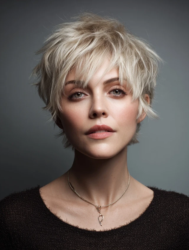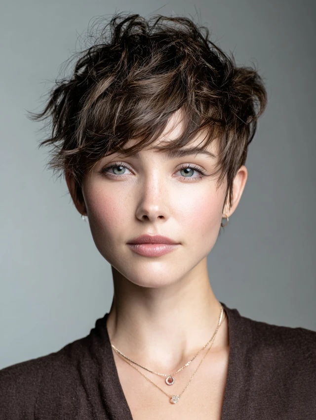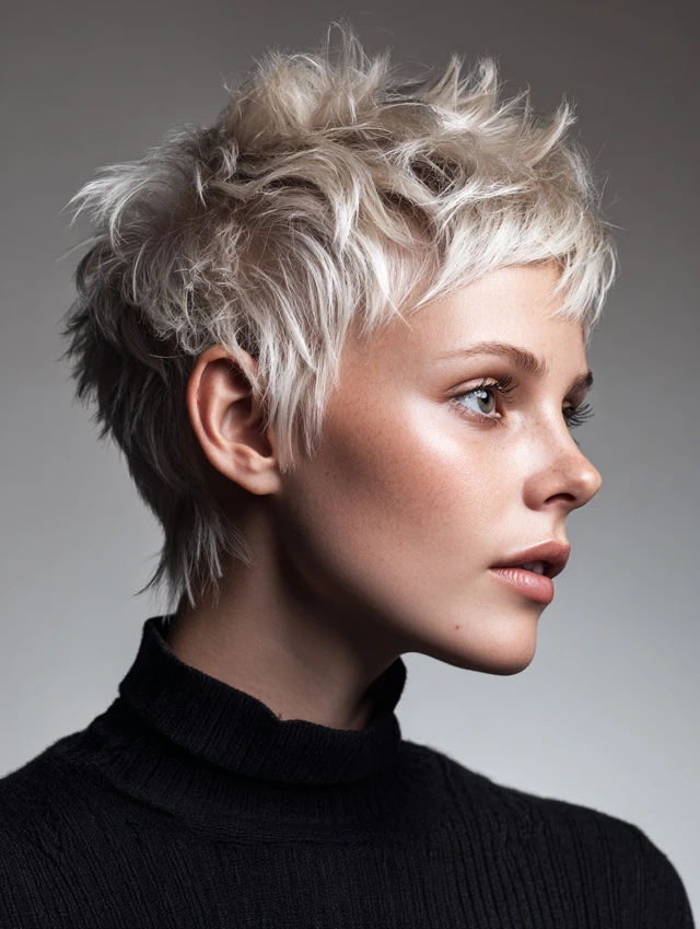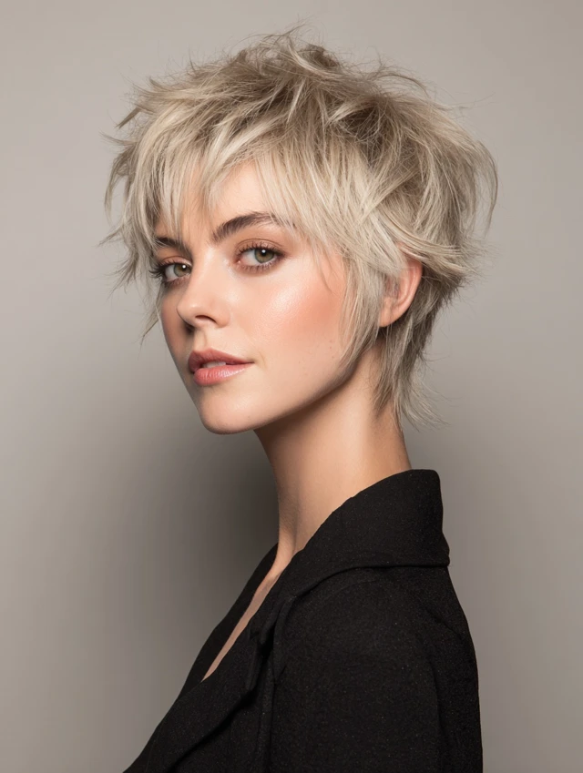 The short shaggy pixie blends short length with textured layers. Unlike classic pixies, this version feels softer and more flexible. Layers add movement at the crown and sides. It works well for petite features and oval face shapes. The shaggy finish keeps it from looking too sharp.