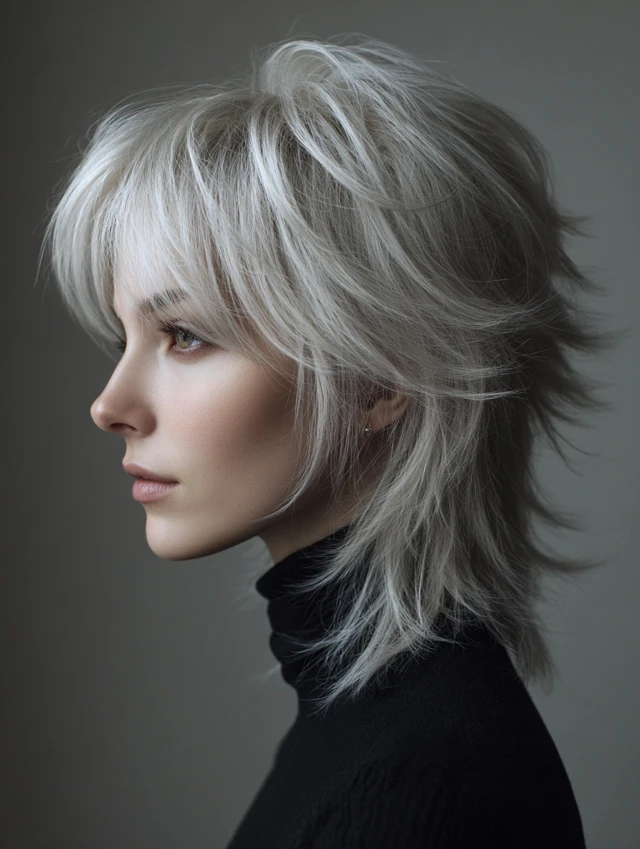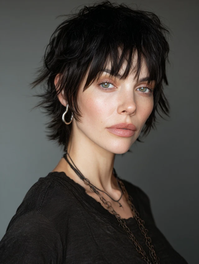 Edgy short wolf cuts feature pronounced layers, asymmetry, or slightly tapered sides for a bold look. The crown remains voluminous while the edges feel choppy and intentional. Works best for oval or longer faces. The cut makes a statement without being fussy.