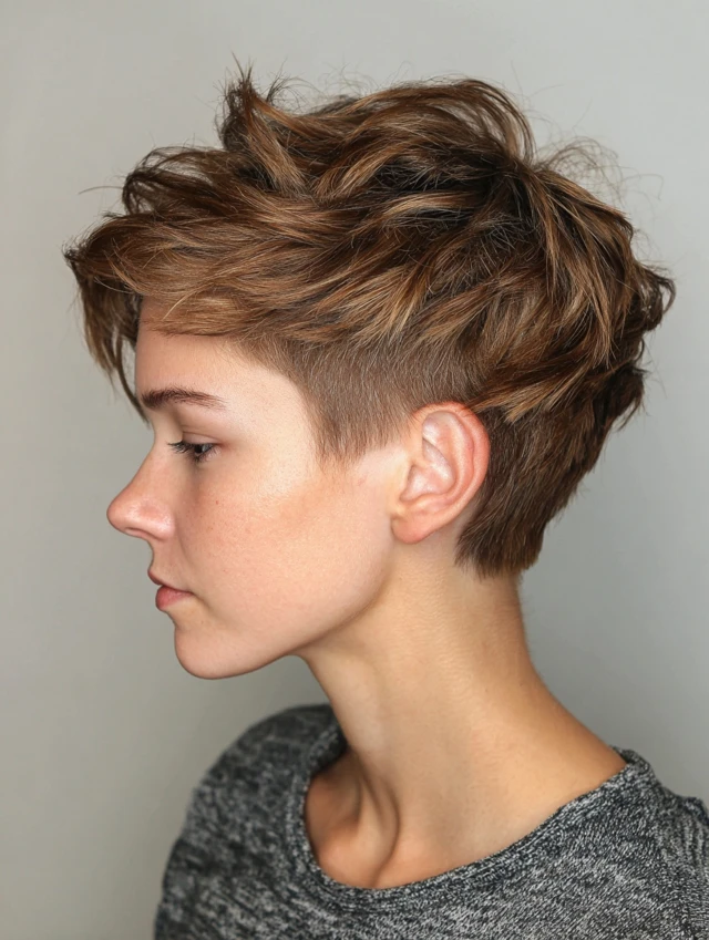This cut suits straight to wavy textures. Styling requires light paste or cream to define layers. Maintenance is moderate, but grow-out still looks stylish. Perfect for trend-conscious women seeking personality in a short haircut.