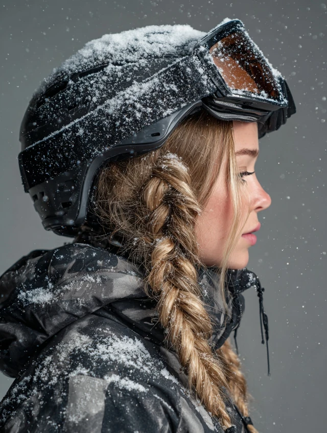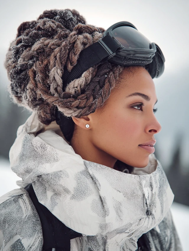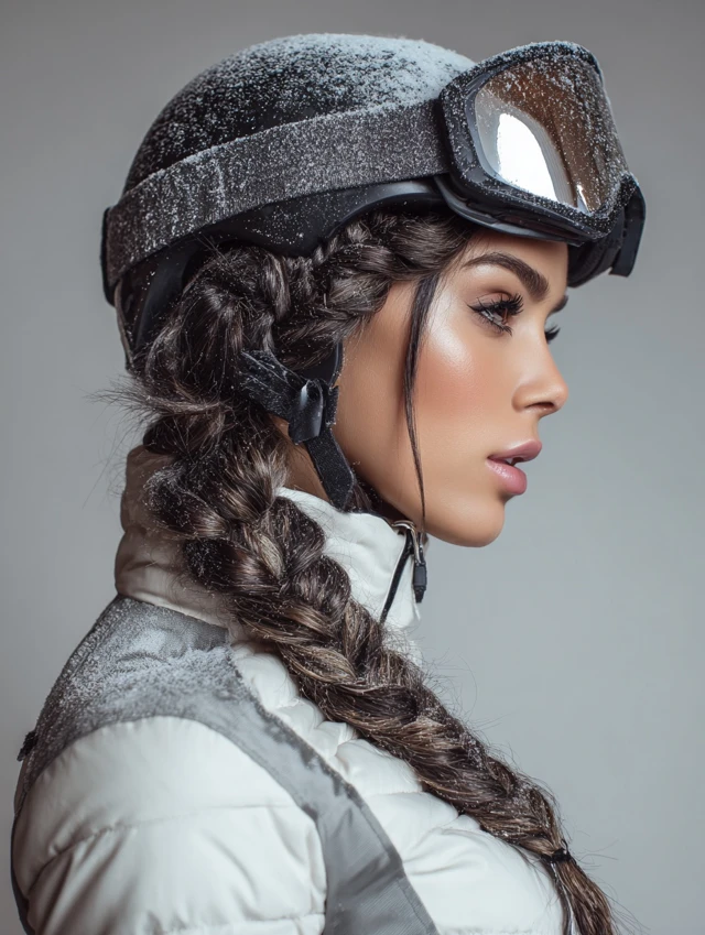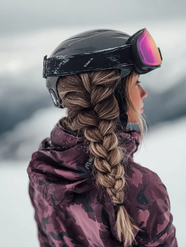 Best for thick hair that needs strong control. Prep with styling cream. This look works for full-day skiing and après-ski transitions. Loosen slightly afterward for comfort.